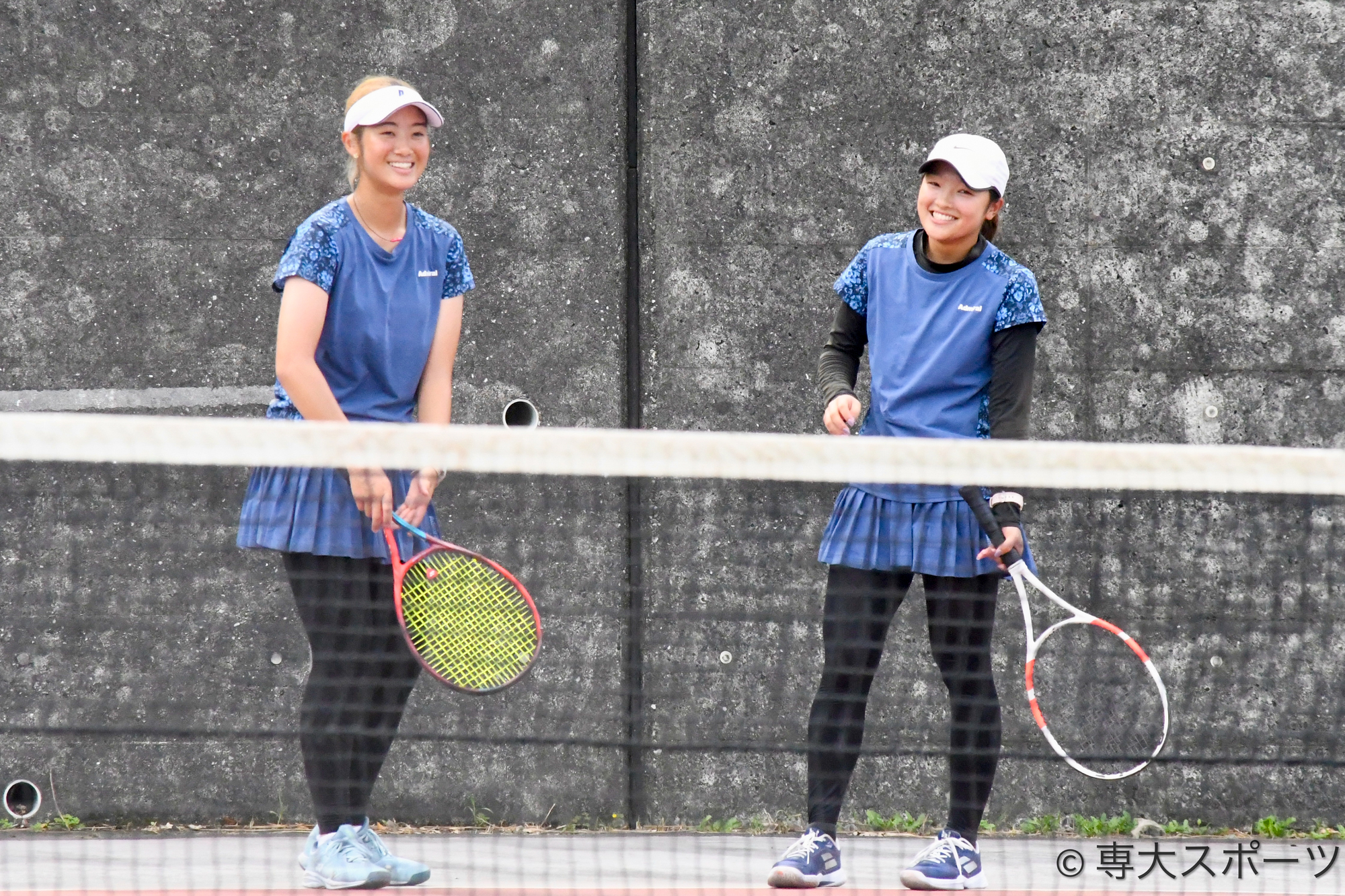 D2の鈴木香漣(経営2・野田学園高)・渡辺涼香(文2・白鵬女子高)ペアは第1ゲームを0-6とストレートで先制を許すも、第2ゲームは6-2と持ち直した。その後、タイブレークを10-6で制し、ゲームカウント2-1で勝利。ダブルスで2-0と主導権を握った。