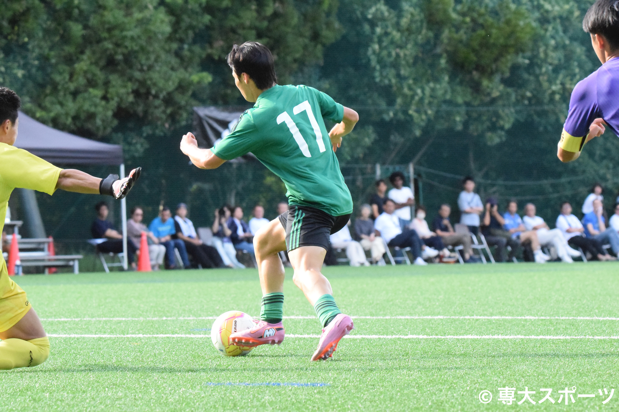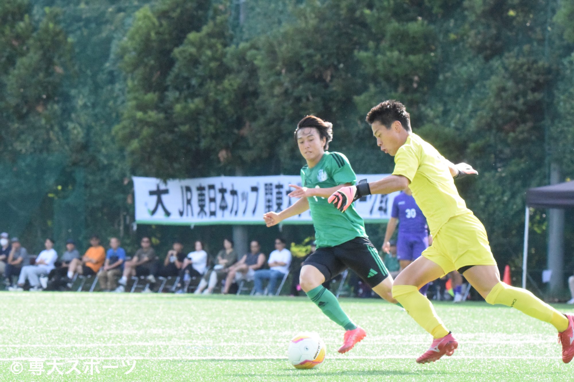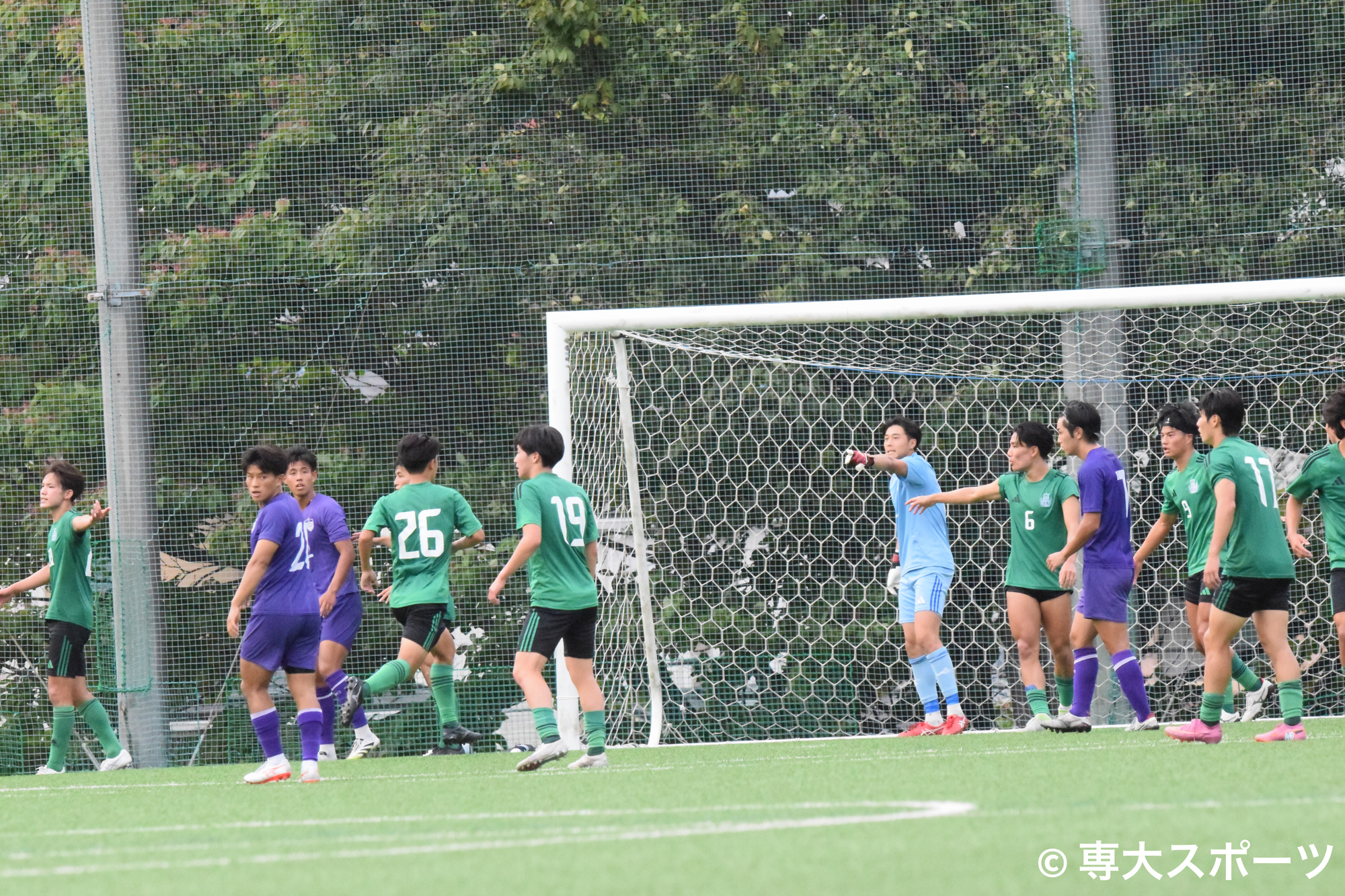 試合終盤、何度も危ない場面を迎えるが、上林を中心に耐え凌ぐ。相手はラストプレーでCKを獲得したが、上林が冷静に対応して試合終了。後半には2点を奪われたものの、最後までリードを守り切った専大が3-2で勝利し、立教大にシーズンダブルを達成した。