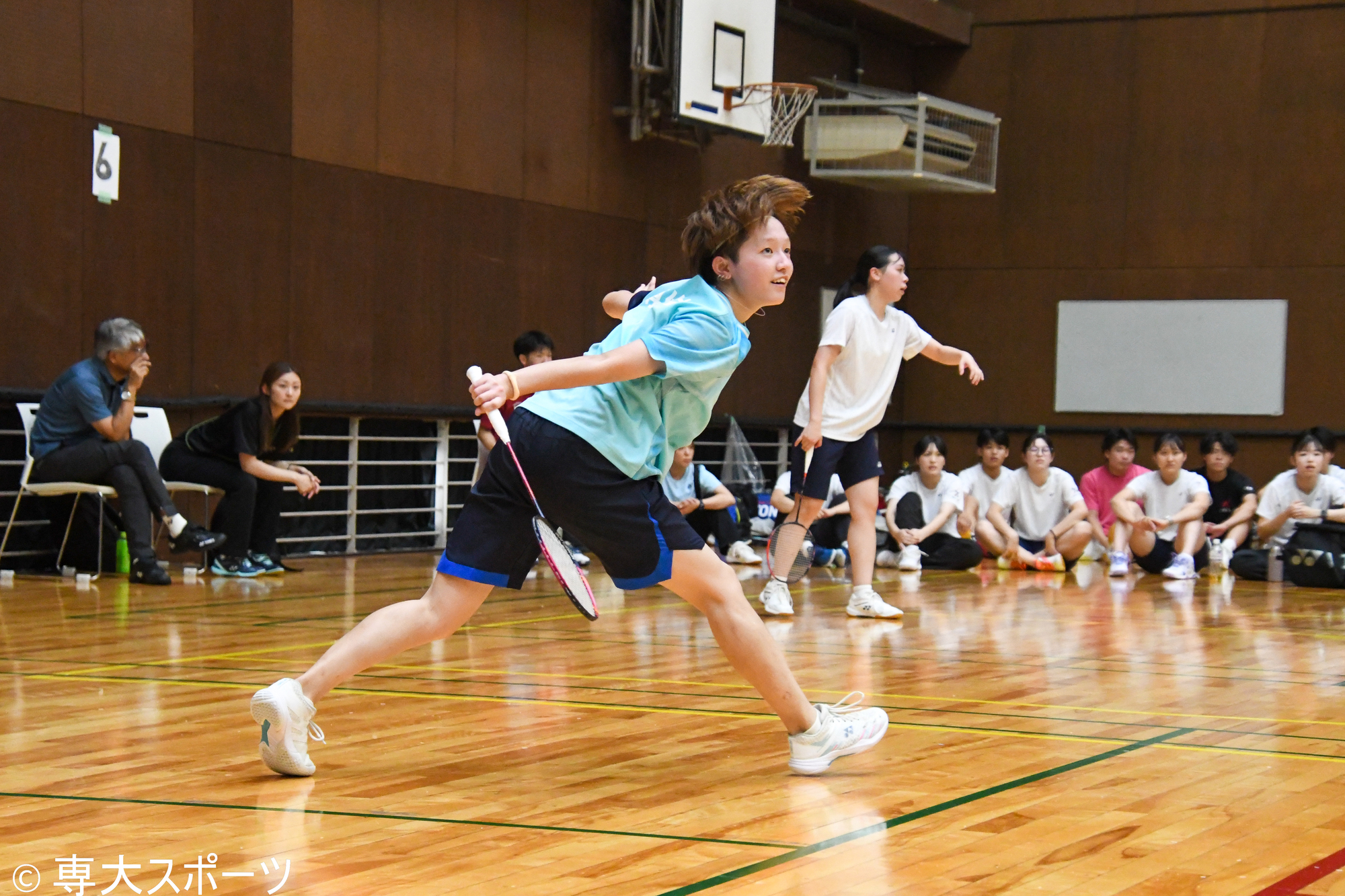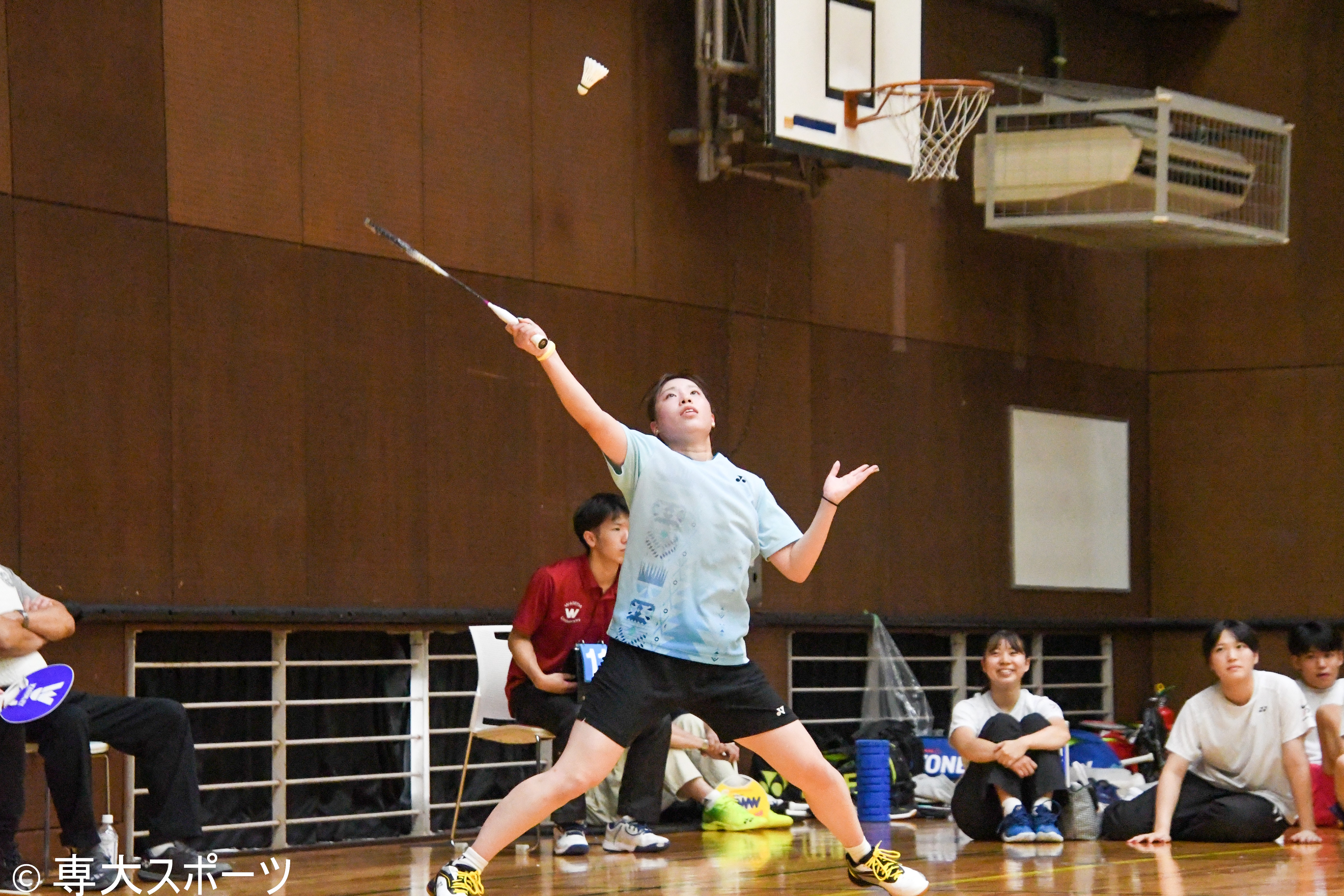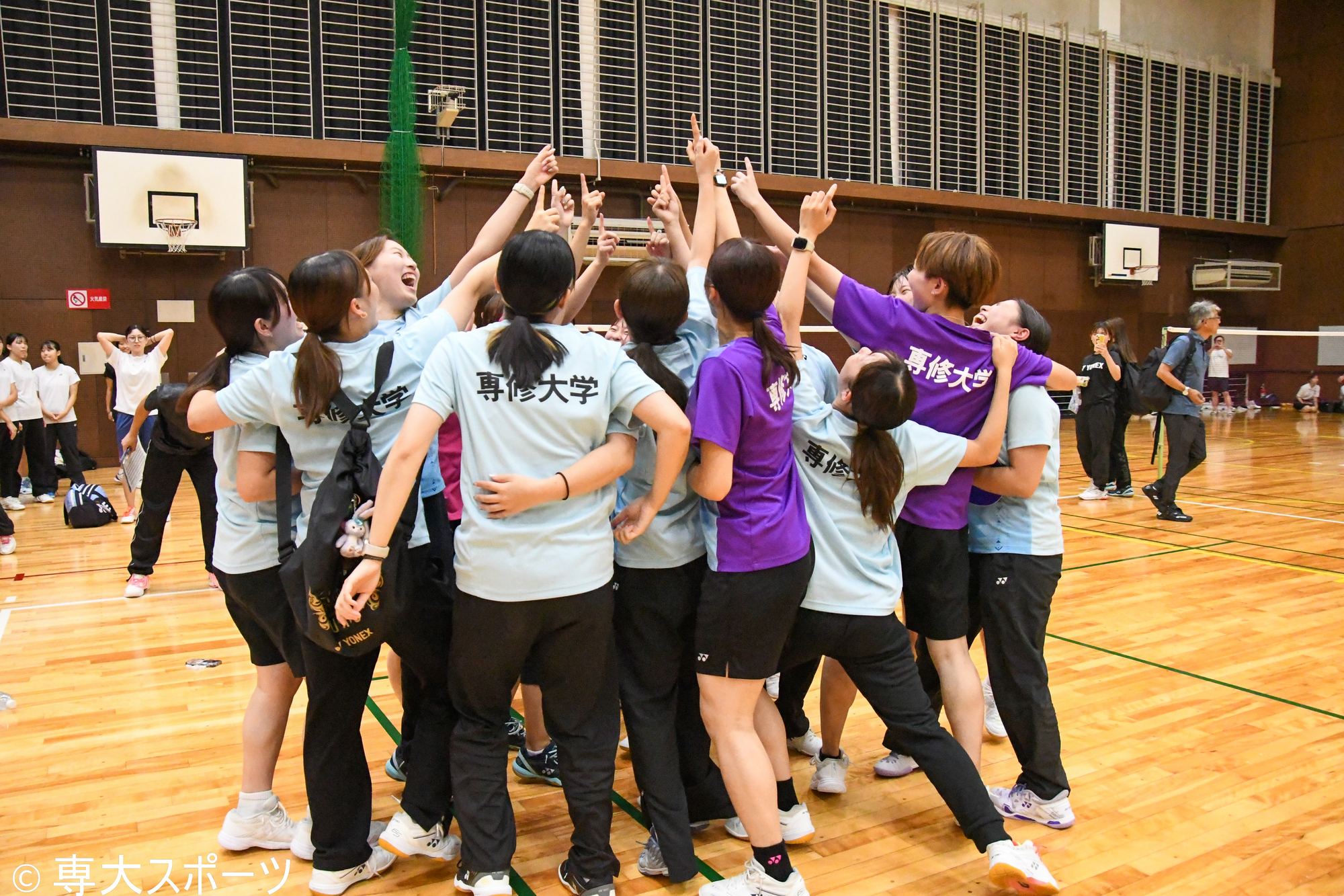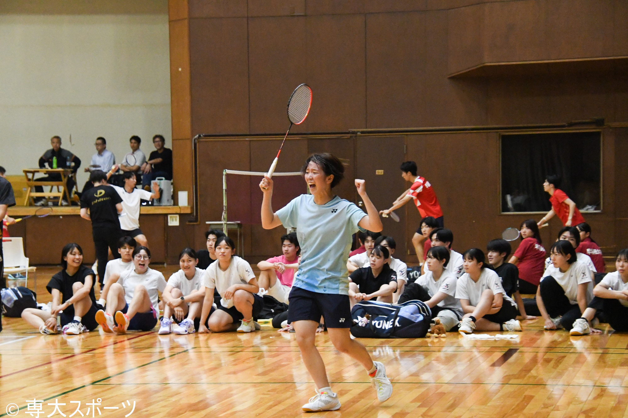 第1ダブルスと第2ダブルスで敗れた専大は続く第3シングルスの長谷川に勝負の命運を懸けた。「先輩たちがとても良い雰囲気で送り出してくれた。自分は一年生なので挑戦者の気持ちで試合に挑んだ」と試合前を振り返る。第1ゲームは11-6とリードしてインターバルを迎えるも中盤はミスが多くなり同点に追いつかれる。流れを渡した中でも粘り強く返球しリードを掴むと21-19で勝利した。第2ゲームではお互い一歩も譲らない互角の展開となる。長谷川は得意とする決定力抜群のスマッシュを軸にゲームを進め21-18で勝利。専大は3-2で日大に勝利し念願の1部リーグ昇格を決めた。2023年秋に降格して以来、2年ぶりの1部リーグ復帰となった。試合後、長谷川は「緊張したが応援してくれる先輩や同期の声がたくさん聞こえて、思い切り楽しむことができた。入学してから1部昇格を目標にしていたので、4年生の最後のリーグで最後自分が勝って昇格決めれて嬉しい」と笑顔を見せた。