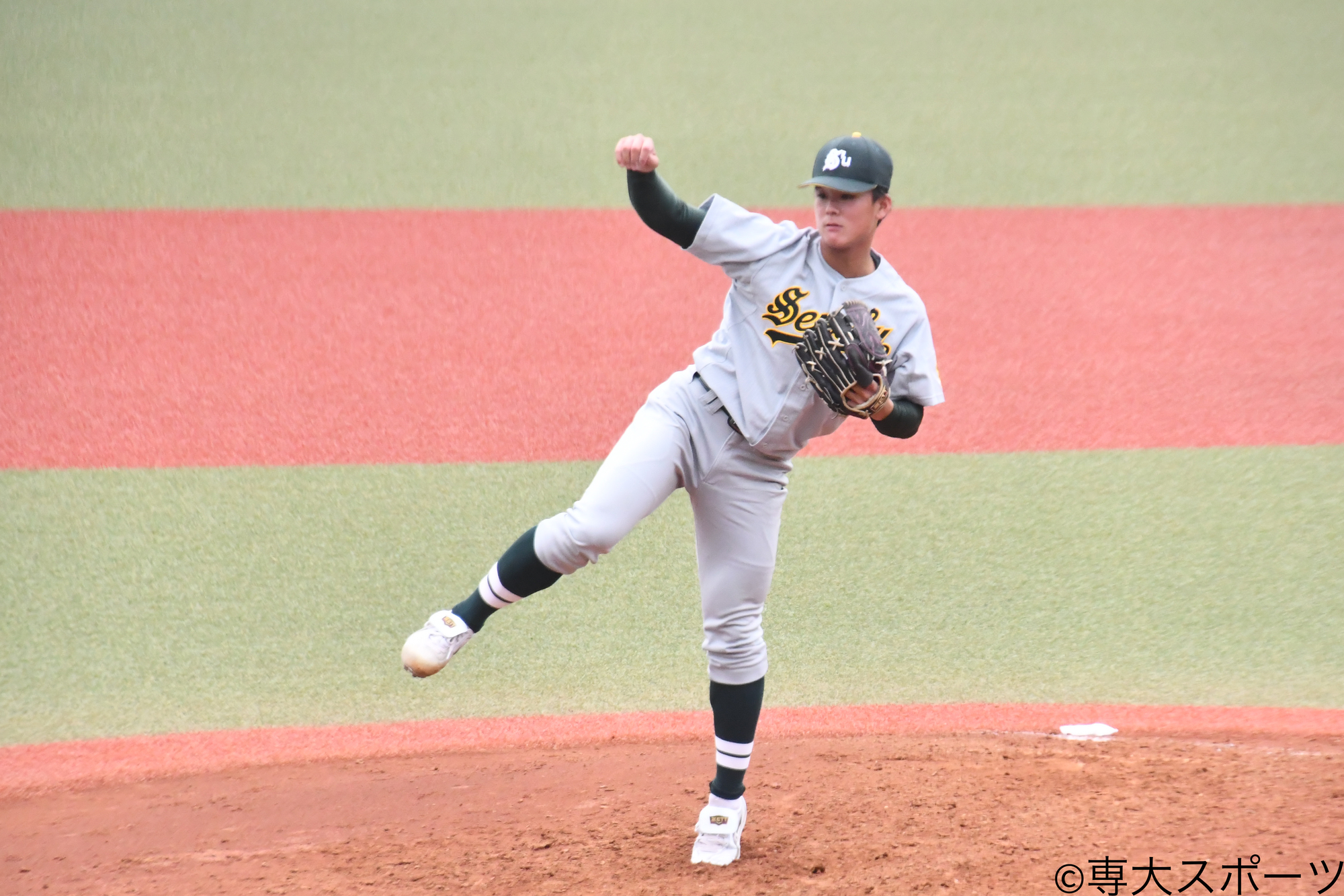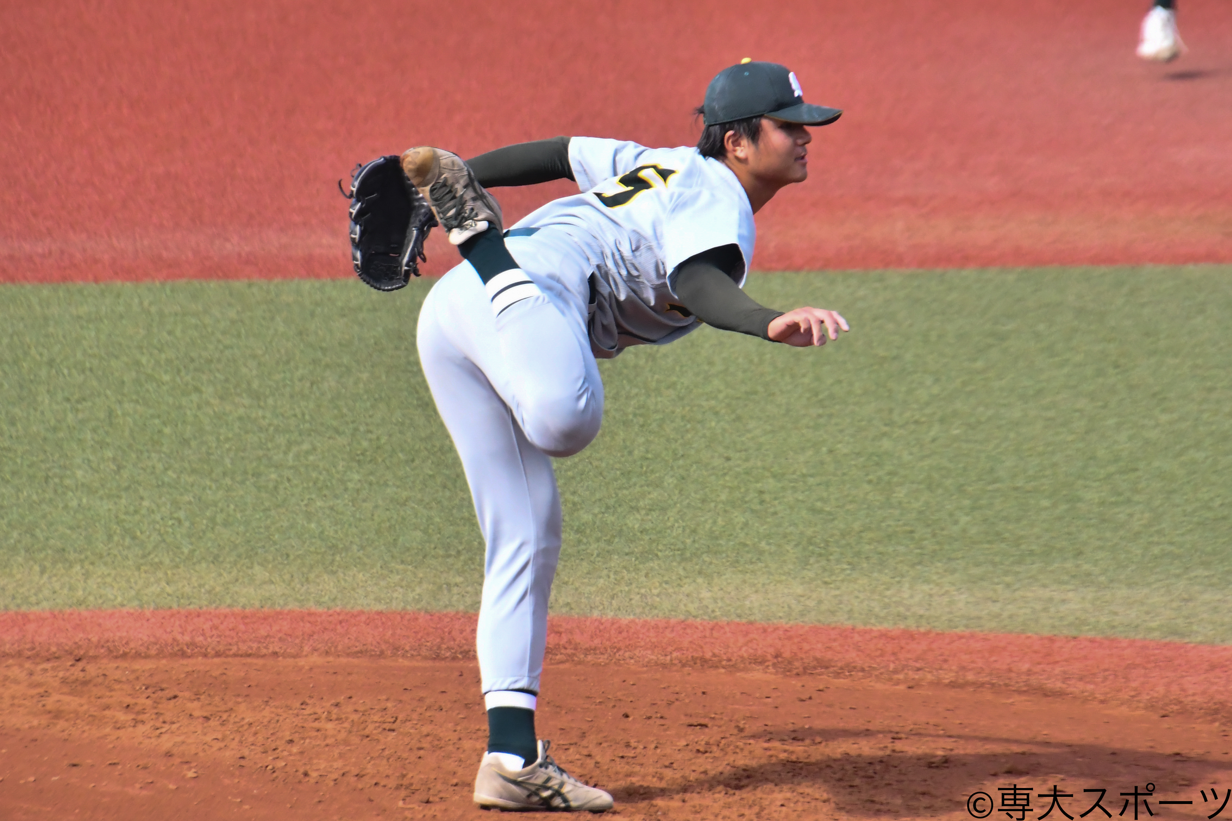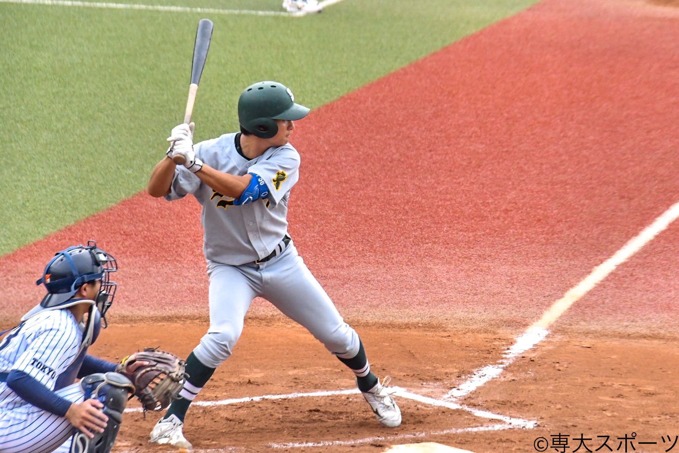今季から節の2戦目を任されている岡本はこの試合で勝ち星がつかなかったものの、3回まで拓大の先発・内山将投手の両投手が一人も出塁を許さない投手戦が繰り広げられた。「内山投手も結構良い投手だというのは分かっていたので、あまり点が入らないと思っていた。相手との我慢比べで、どちらか一方が崩れたらズルズルいってしまうと思っていたので、前半で絶対に崩れない」と強気な投球を続けていた。