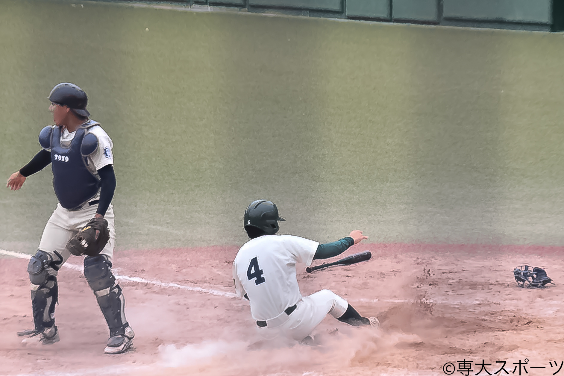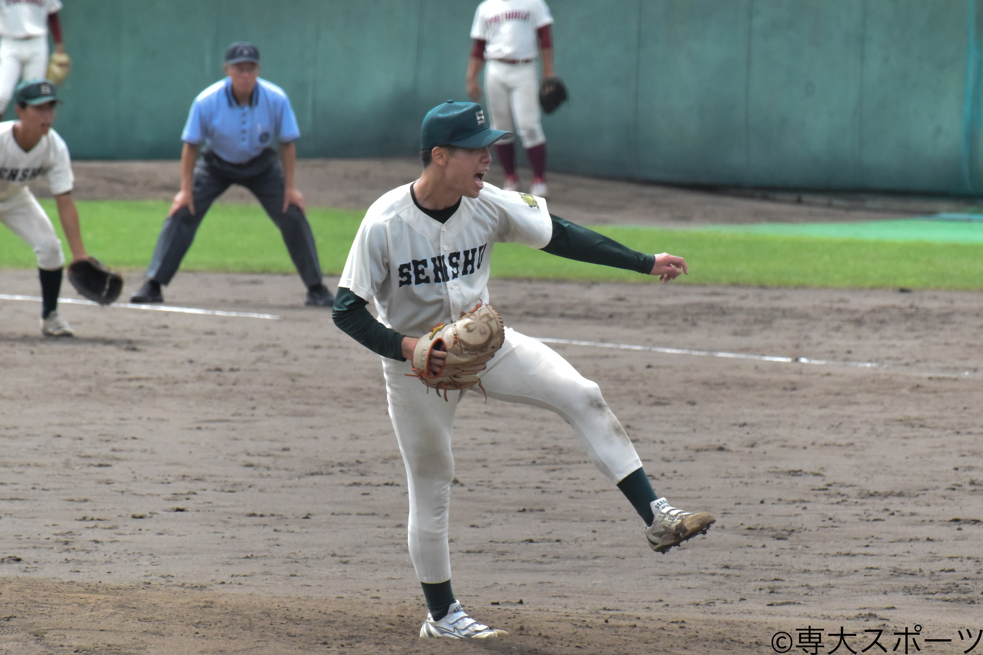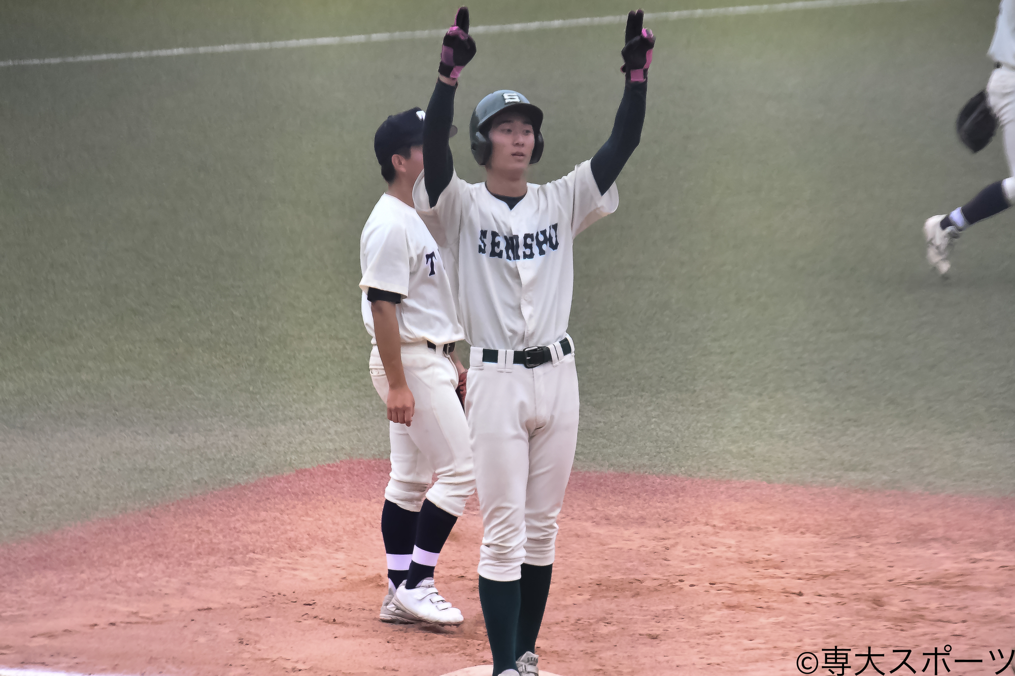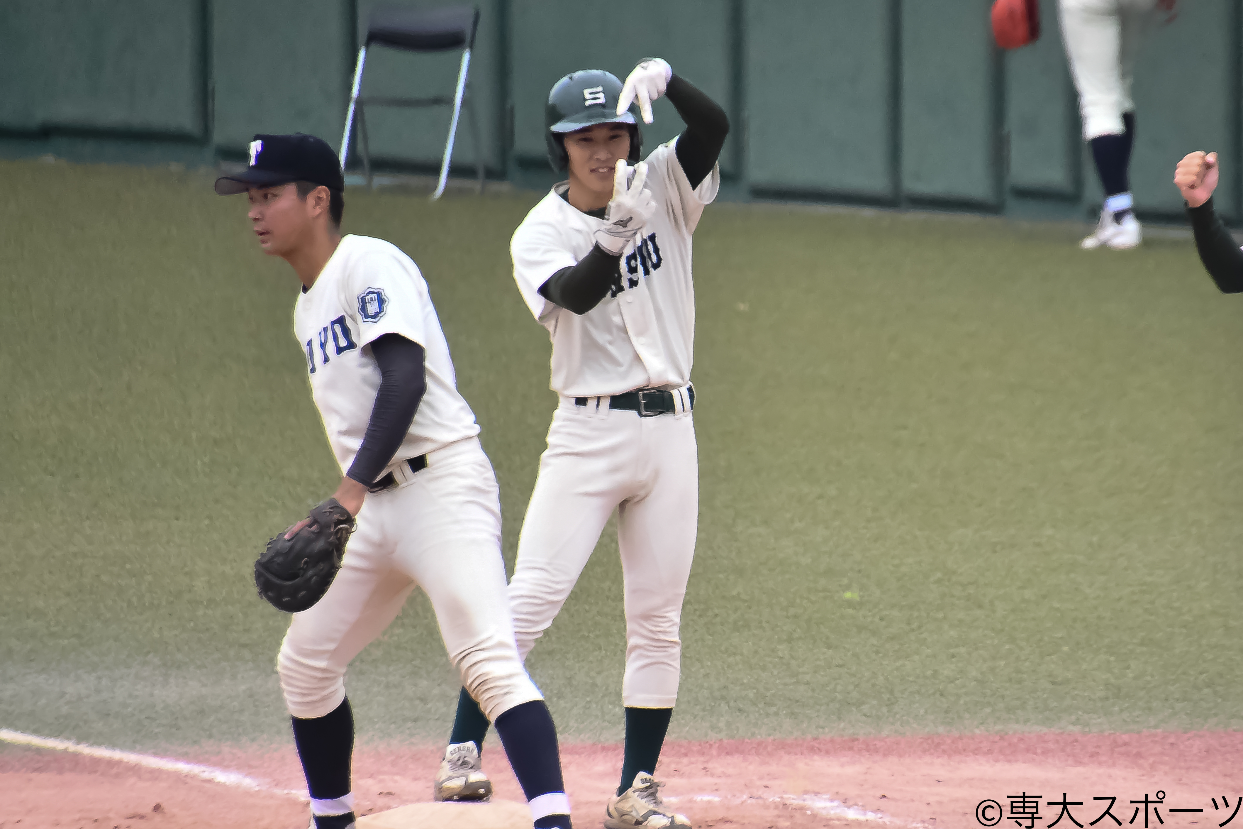 打線は1点ビハインドで迎えた3回に村上広(経済3・札幌第一高)が四球、宮尾日向(法2・専大松戸高)が相手の失策で出塁し2死一、三塁の好機を作る。そして濱田航輔(経営2・星稜高)の打席間に一塁走者・宮尾と三塁走者・村上がダブルスチールを仕掛け、同点に追いついた。