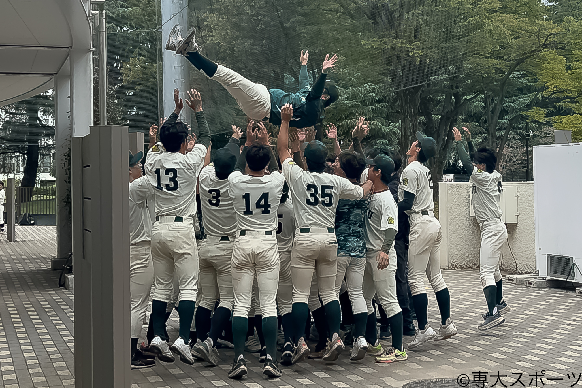 ▲選手たちで監督を胴上げ