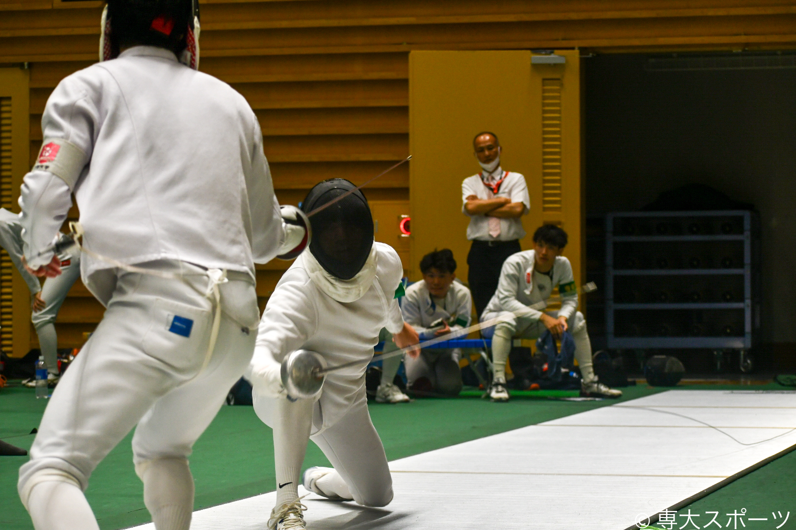 今季はリーグ戦で優勝、学生王座戦で準優勝を果たしたエペチームが初戦敗退と悔しい結果に終わった。専大はシードで3回戦から出場し、日大と対戦した。前日の個人戦で優勝をつかんだ熊谷志孔(商2・北陸高)は別大会への参加のため、欠場。峯田大空(経営4・米沢興譲館高)、泉怜邑(文2・岩国工業高)、下村祐翔(人間科学2・岩国工業高)の布陣で挑んだ。