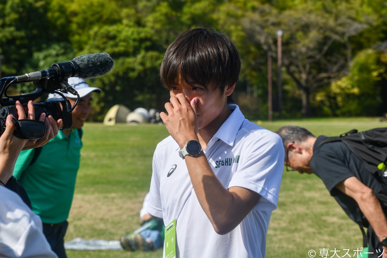 「ただ、今回のレースに関しては、直前で足が痛くなったりというアクシデントもあったり、その中で監督は信じて自分を出走させてくれ、2人(=中島優太、経営3・駒澤大高と西岳政宗、法2・県立玉名高)が出走できなくなったので、しっかり責任感を持ったレースをしなきゃいけなかったと思います。去年と引き続き、悔しい続きになってしまって、そこはダメだなと思いました。ですが、落ち込んでいる余裕もないので、この悔しさを11月・12月のレースでリベンジしたいです」
