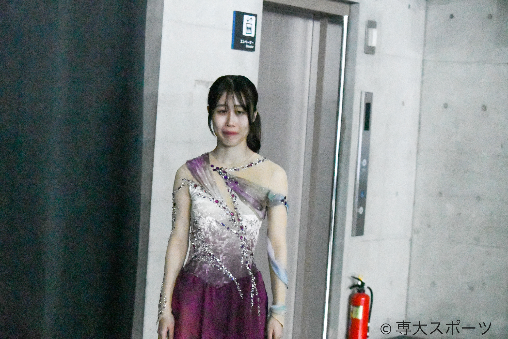 今回構成を上げて2本にしたダブルアクセルは両方とも回転不足を取られ、2本目では片手をついてしまったことで大きく減点された。「1週間前ぐらいから腰が痛くて、アクセルが全然飛べなくなってしまった。試合前にやっと戻せたのですが不安でした」とアクセルジャンプに不安を抱えて試合に挑んだことを語る。しかし、怪我を抱えた中でもスピンやコレオシークエンスには加点をつけ、最後までしっかりと演じ切った。