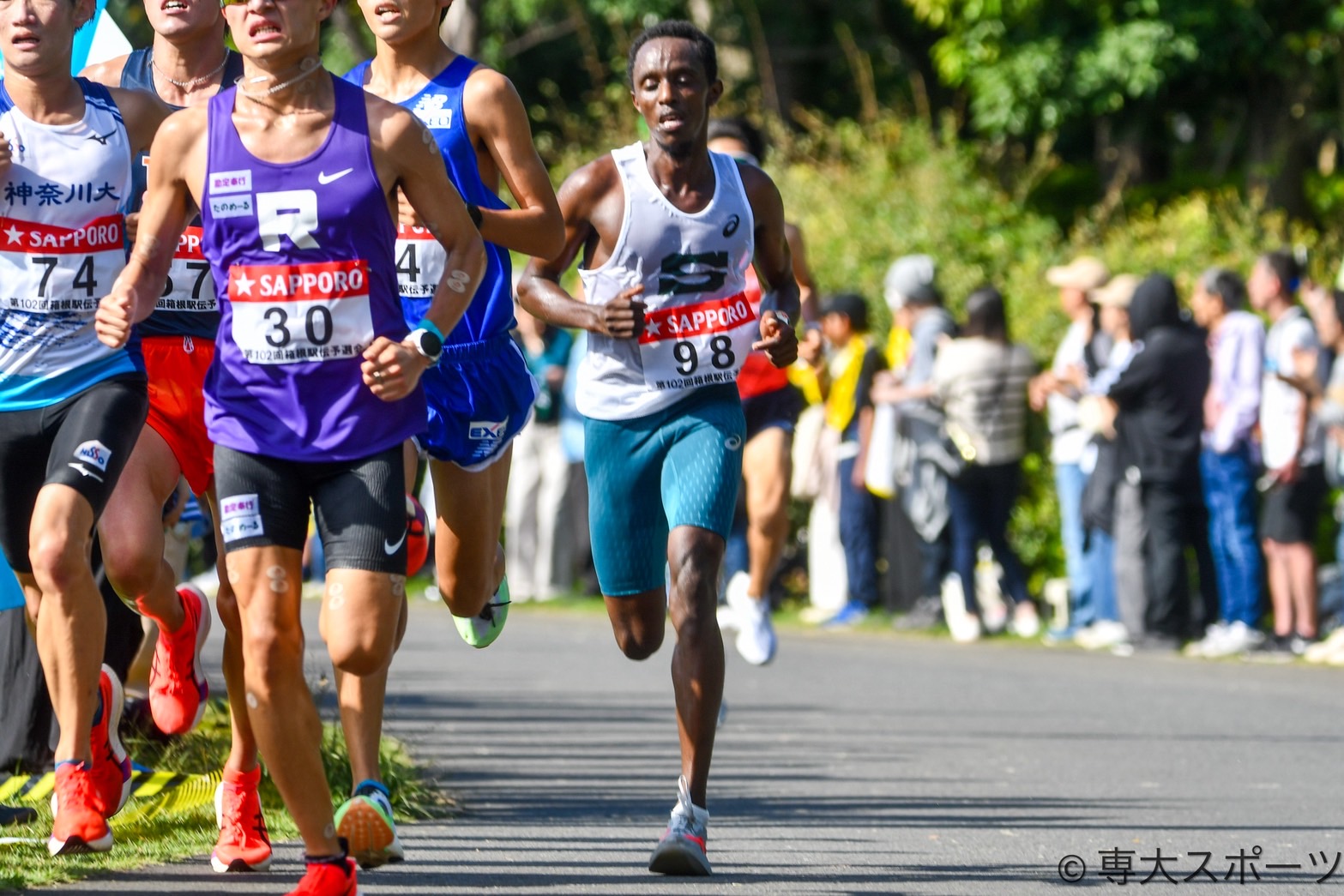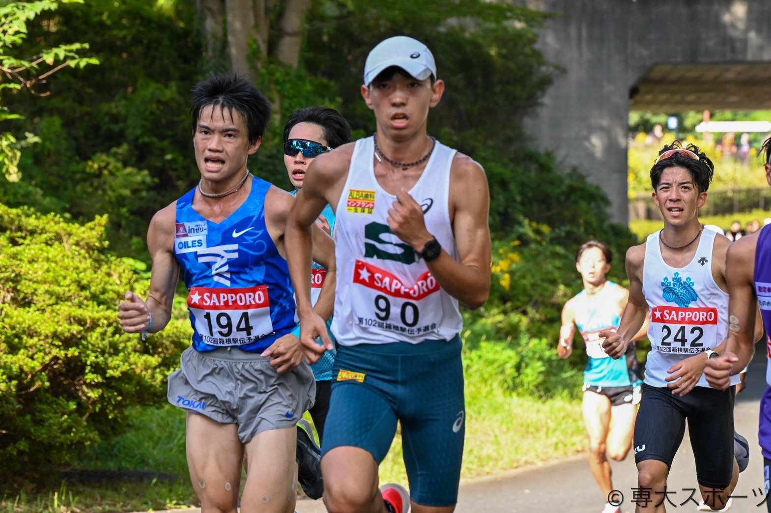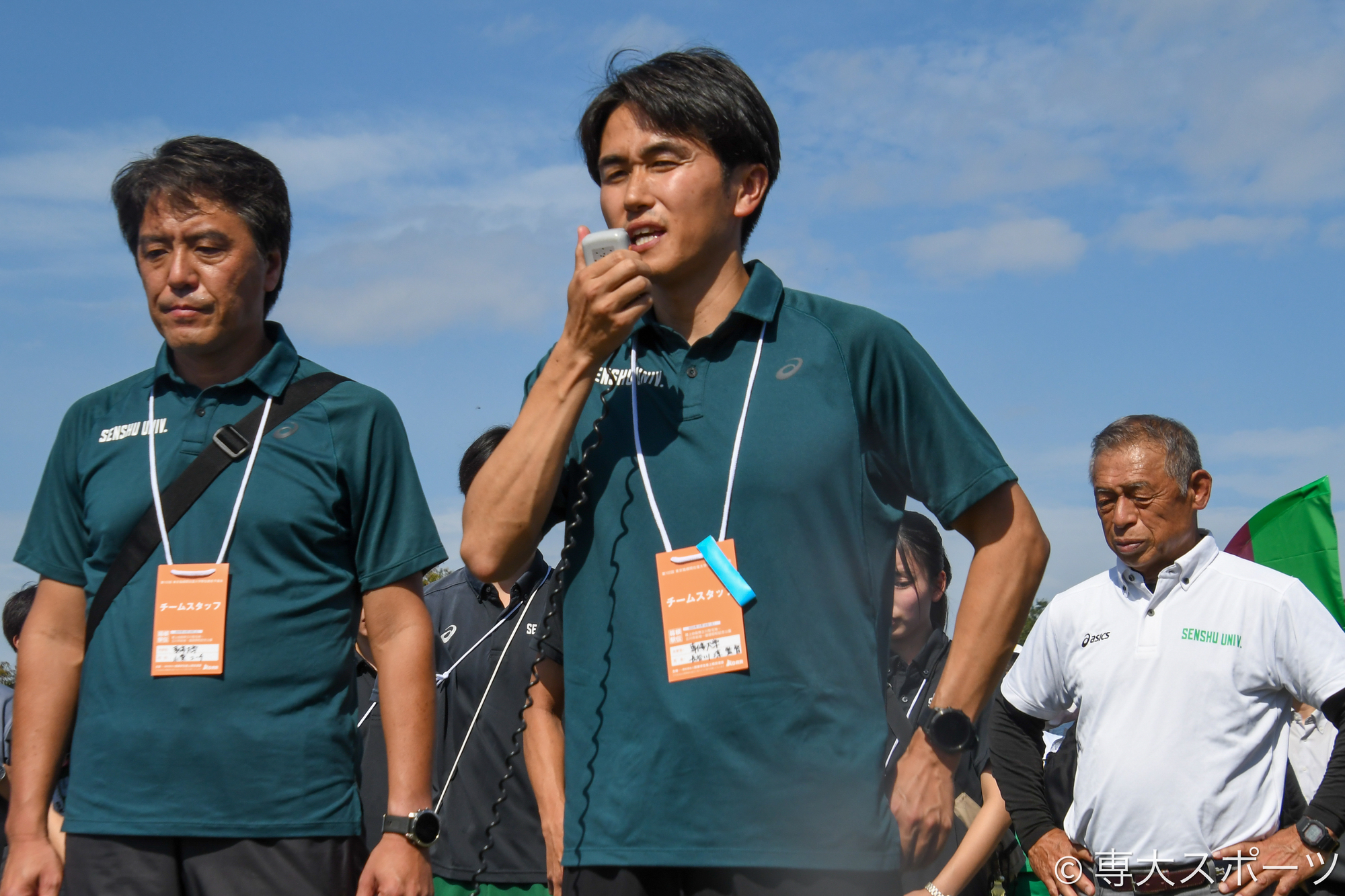 今大会で長谷川淳監督は「3名フリーであとは集団走というところで、ペースについても大体指示通りに行ってくれれば(予選突破は)行けるというのと、総合タイムは10時間35分から36分というところも想定はしていた」と指示を送り、ダンカン・マイナ(商2・専大熊本玉名高)、新井友裕(文4・浦和実業学園高)、上山詩樹(経済3・敦賀気比高)の三本柱は個別に走り、他の選手は集団走を形成した。
