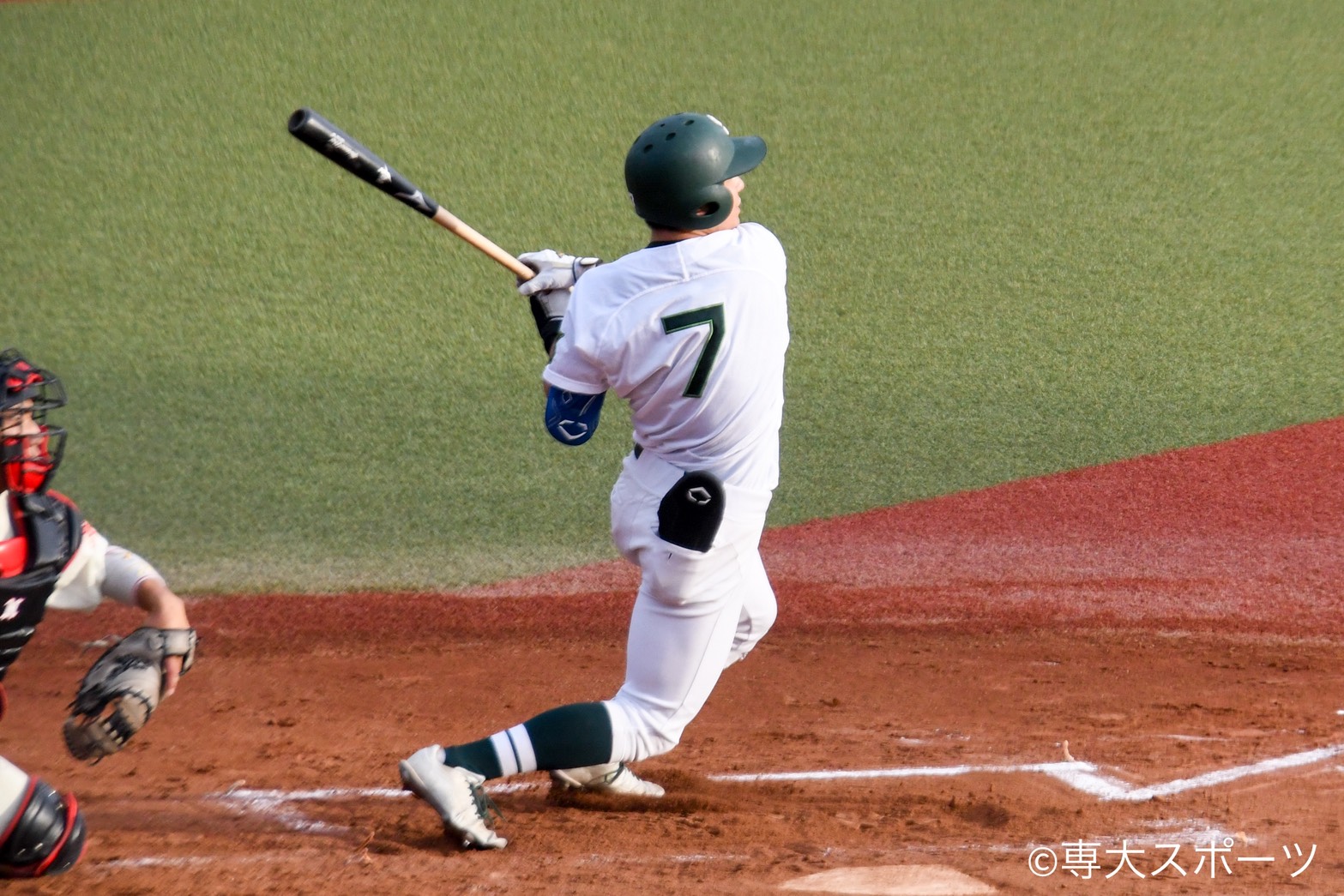 打線は2回、4番の渡辺維介(文2・松本国際高)のチーム初ヒットとなる三塁打を契機に、続く宮﨑元哉(経営3・明豊高)が「真っすぐを待っていた」と狙い通りに直球をライトに運ぶ適時打で先制。1死三塁の後、中野拳士郎(文4・小浜高)がライトへの犠飛で、2点目を挙げた。3回には2死二塁から谷頭太斗(経営3・日本航空石川高)が初球を捉え適時打を放つと、続く渡辺もフルカウントまで粘って放った2打席連続の適時三塁打を放ち、リードを4点に広げた。4回にも無死一、三塁から今季長打が多い吉水真斗(経済3・松商学園高)がスクイズの奇策で追加点を挙げるなど、序盤から大幅にリード。春のオープン戦で完封された投手陣から5点を奪い快勝した。