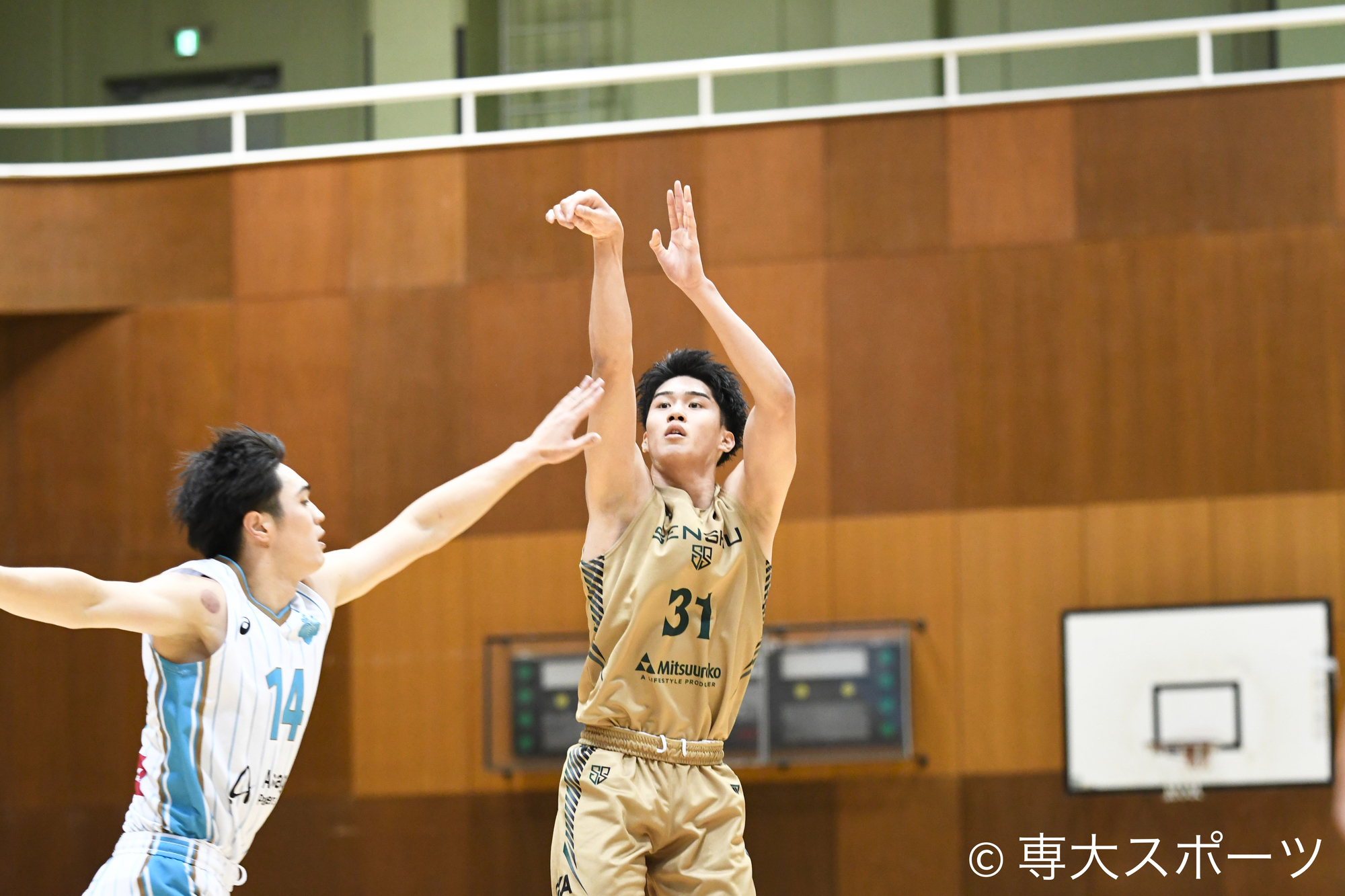 リーグ戦直近4試合で勝ち星が無かった専大は、ホームに筑波大を迎えた一戦で秋季リーグ通算3勝目を挙げた。第1Qで松野遥弥(経営4・桜丘高)ら主力の爆発もあり25-15で順調な滑り出しをみせた。第2Qではタイムアウト以降は相手に寄せきれず、失点をくらい8点差まで詰められる。しかし第3Q、土屋来嵐(経済3・桜丘高)の得点を皮切りに主導権を握り返し、第4Qで 29点差をつけて84-55で勝利を収めた。