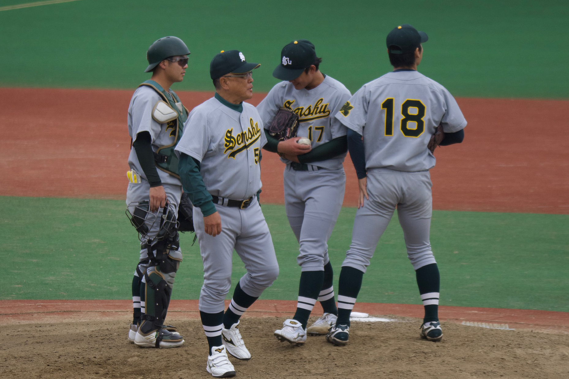 そして、残り1アウトのところで今季最後のマウンドに立ったのはエースナンバーを背負った長島暖和(経営4・専大北上高)。今秋は右肩の怪我の影響もあり自身として思うようにいかなかった。「自分が(そのような状態で)投げていいのかと気持ちの整理がつかなかった」と心が揺れていた。しかし、1年の締め括りとして「最後はエースが締めるべき」と仁村薫コーチに送り出され「監督(=齋藤正直監督)から『投げたいという気持ちがあるのならばはっきりと伝えてこい』と言われ気持ちの整理がついた」と首脳陣の言葉を受け、決意した。