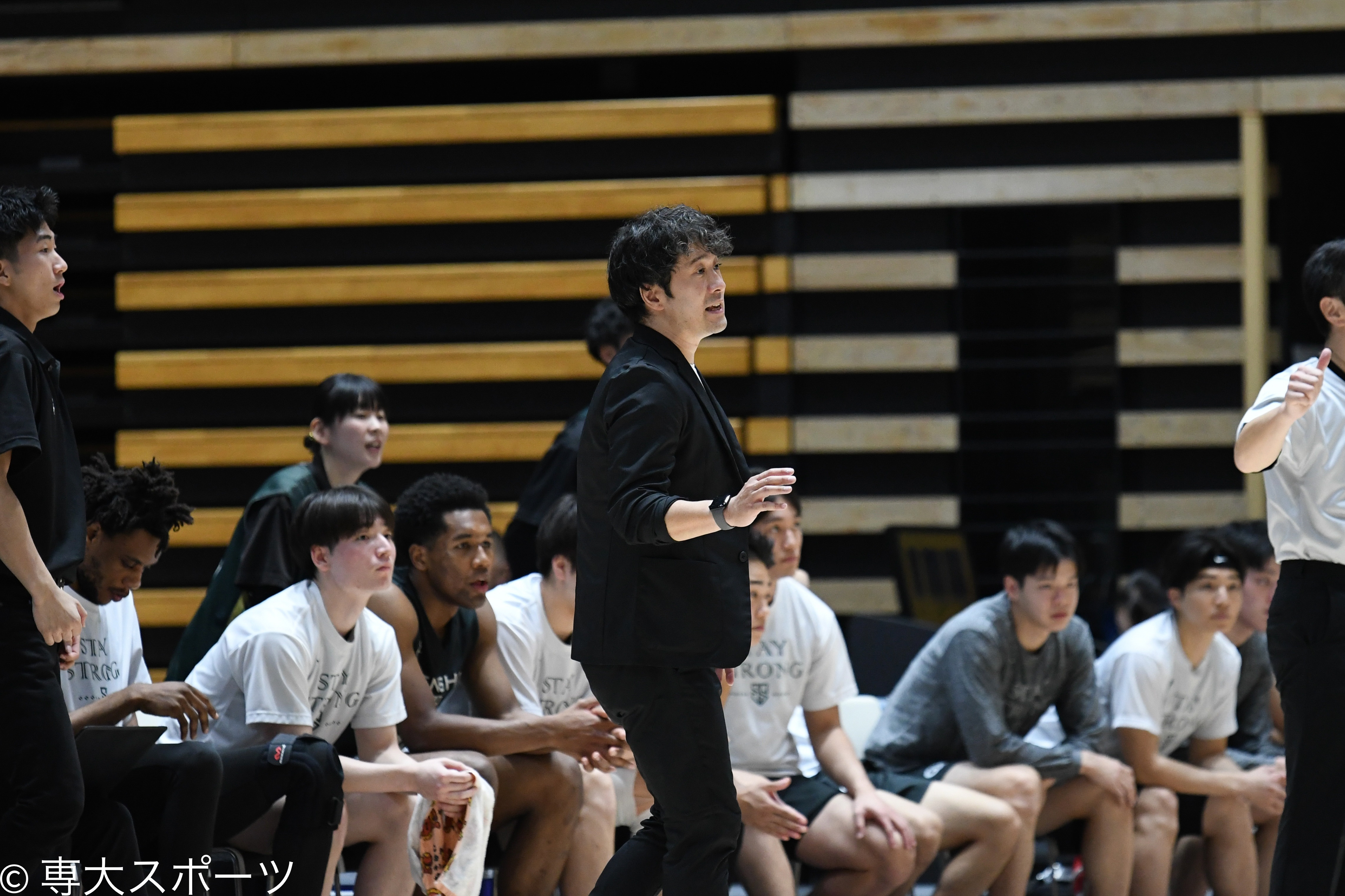 終始追う形で試合が展開した。第1Qから主導権を握られ、第3Q終了時には33点まで点差が広がる。第4Qには清水愛葉(文4・北陸学院高)、松野遥弥(経営4・桜丘高)、笠木憂生(経済2・八王子学園八王子高)が3ポイントを重ねるが、追い上げも虚しく72ー90で試合終了のブザーが鳴った。