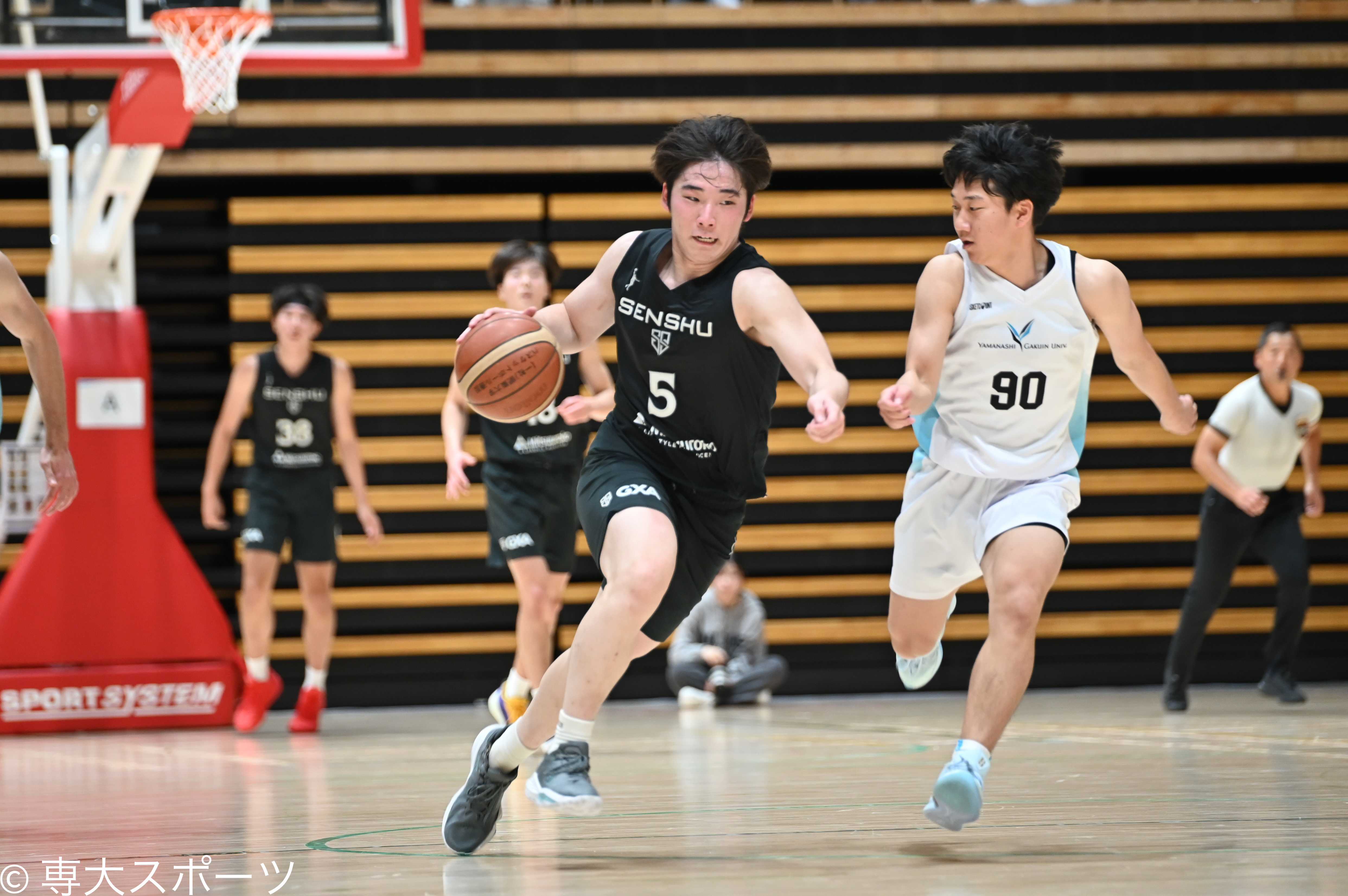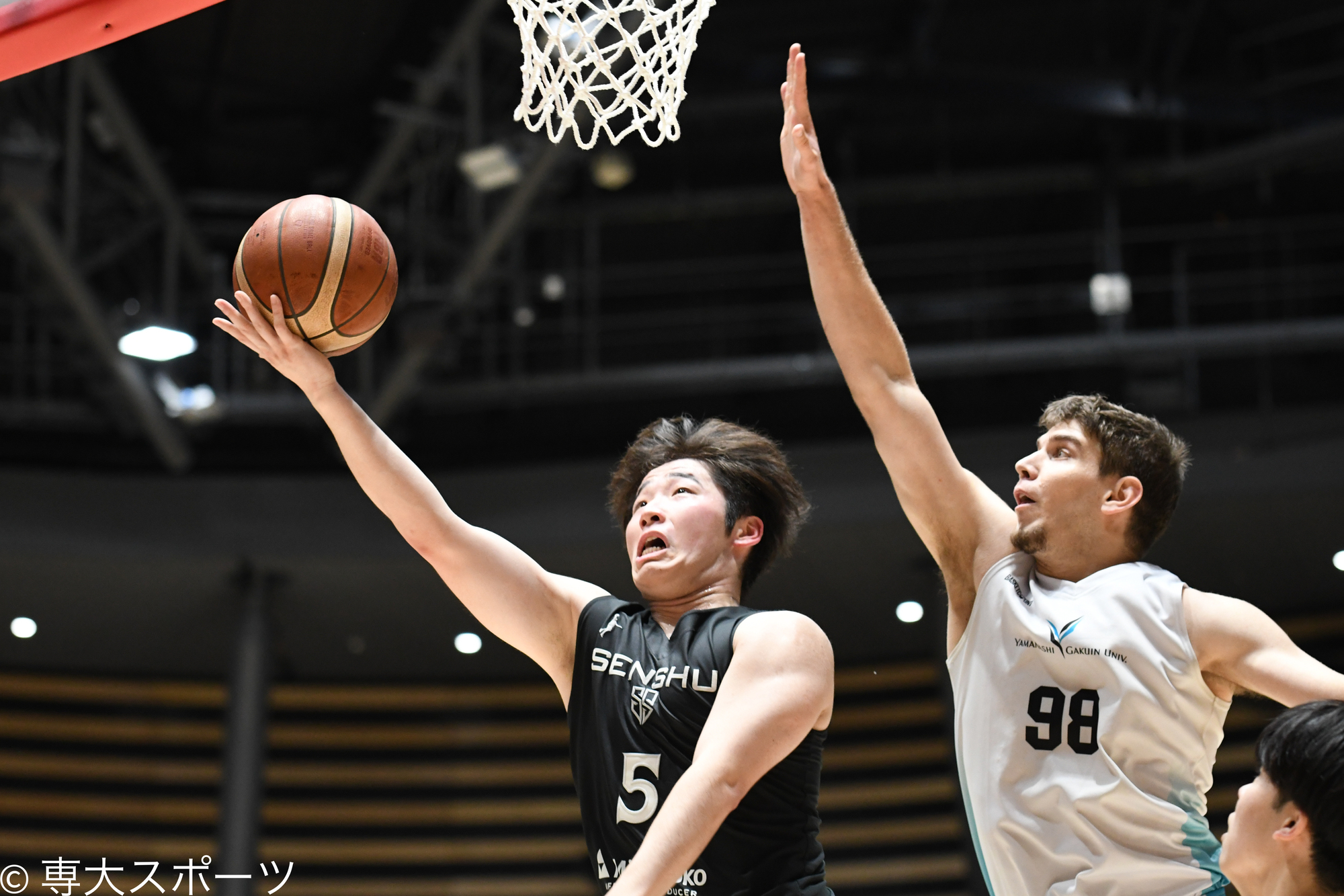 〈第101回関東大学バスケットボールリーグ戦1部・2部入れ替え戦 第2戦=11月5日 大田区総合体育館 専大72ー90山梨学院大学〉