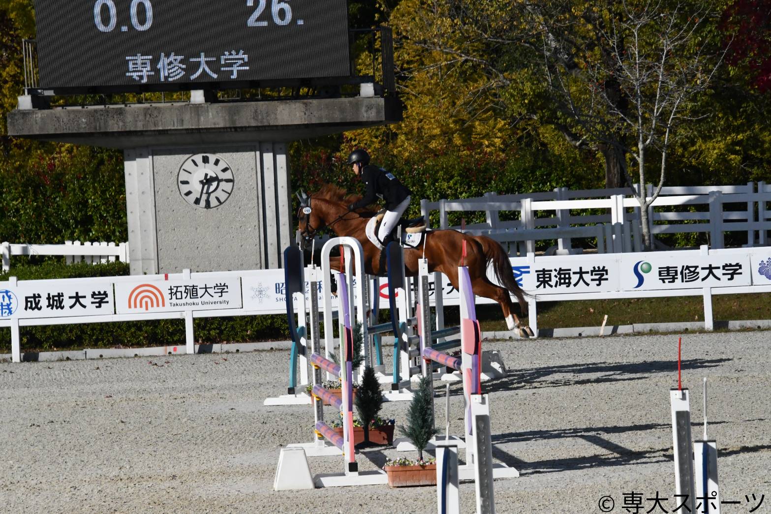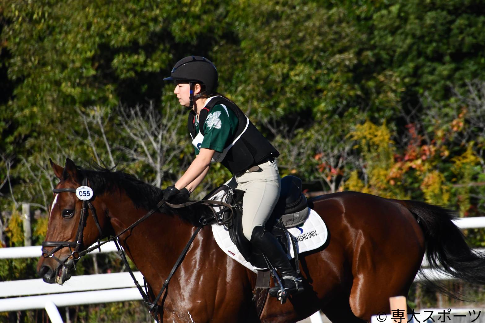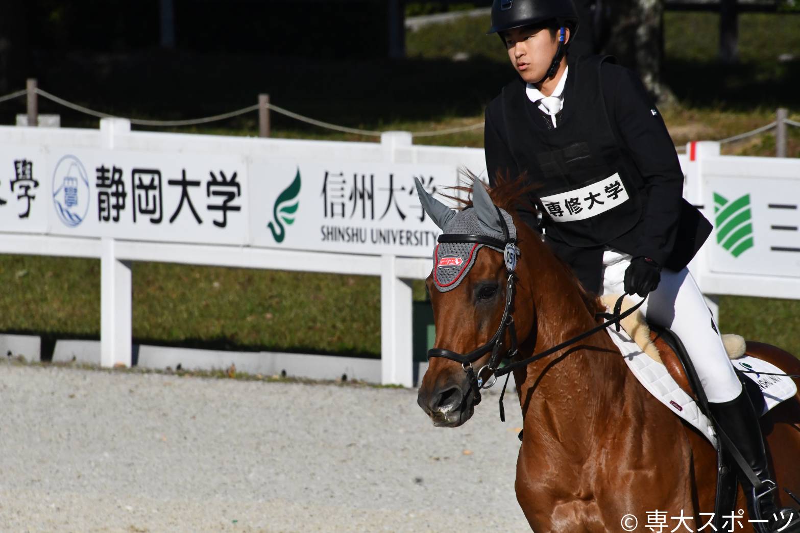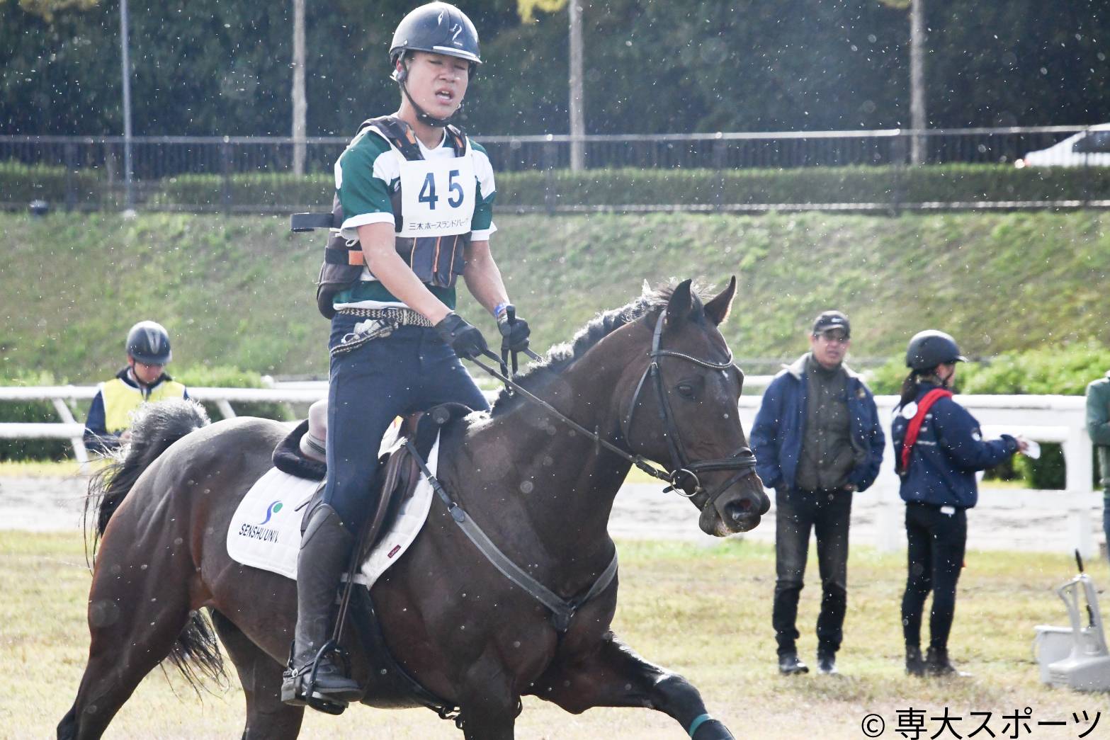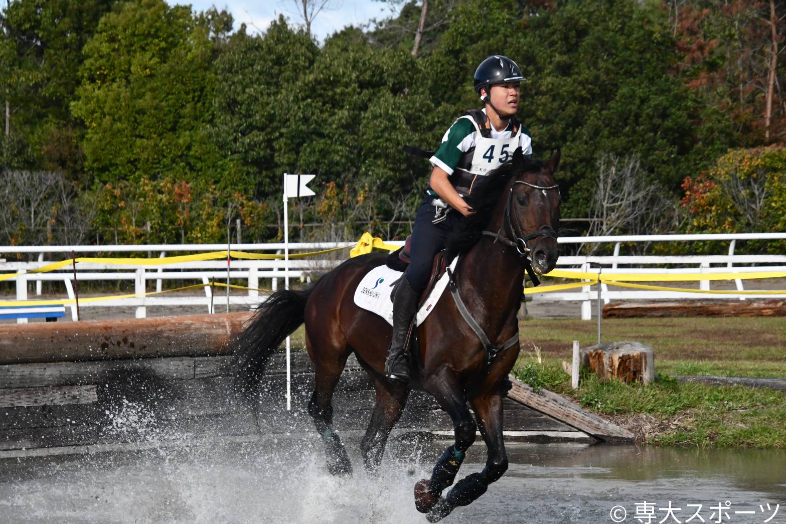 今大会最終日は、総合馬術競技(馬場馬術、クロスカントリー、障害飛越の3種目を同一人馬で行い、その減点合計を競う)のうちクロスカントリーと障害飛越の2競技が行われ、岡田将太郎(経済2・都立農芸高)・ホクソウアスセナ号が3位入賞を果たした。クロスカントリーをミスなく終えると、続く障害飛越でも減点無しの走りを見せて順位を上げた。