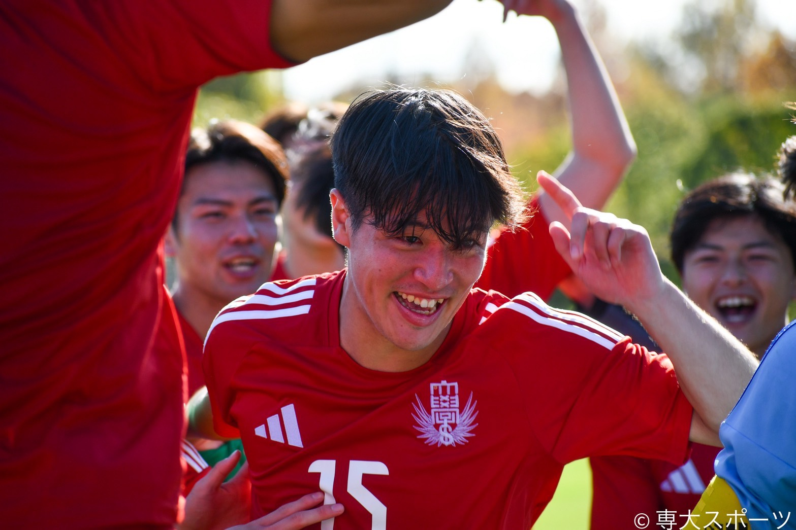「苦しいことの方が多かった。3年間全部、参入戦で昇格を逃してきて、(専大は1部で)4連覇をしているのでなんとも言えないが、自分たちの手で(歴史を)やっと動かしたというのは、自分たちにとっても大きいし、後輩たちにとっても大きいことだと思うので、本当に良かったです」