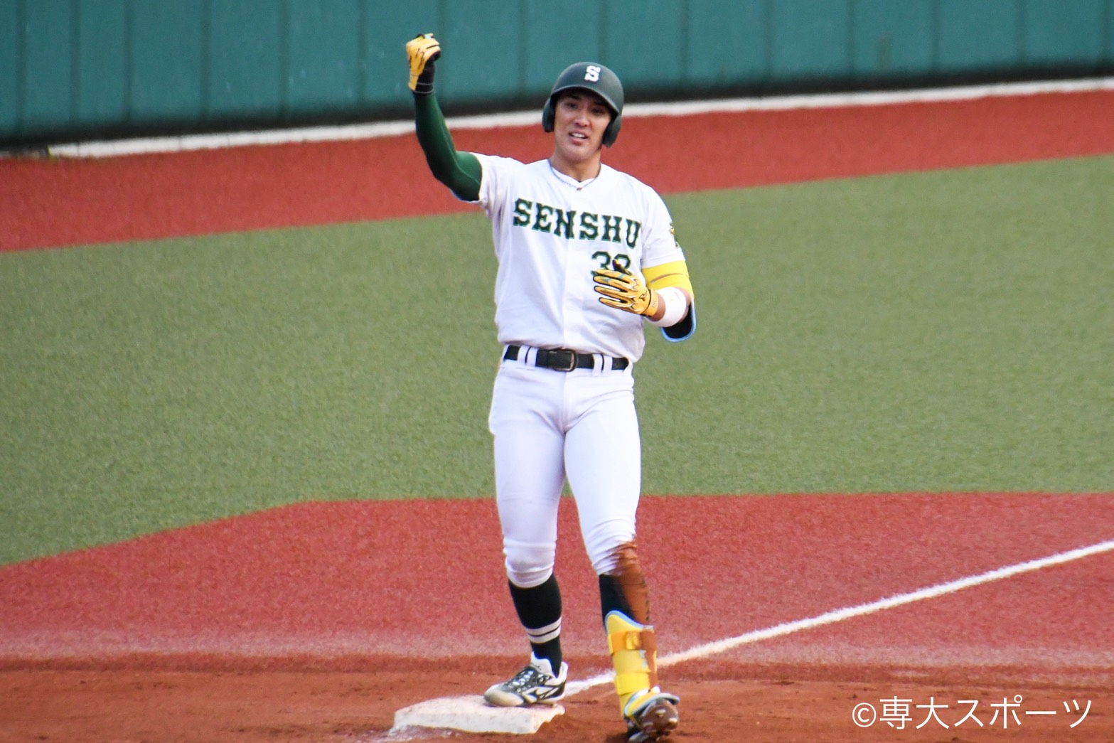 ▲三塁打2本を含む3安打猛打賞で活躍した(対日大1回戦)
