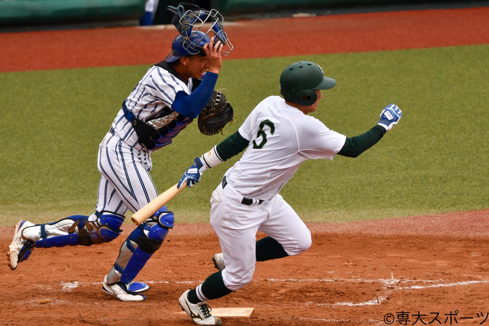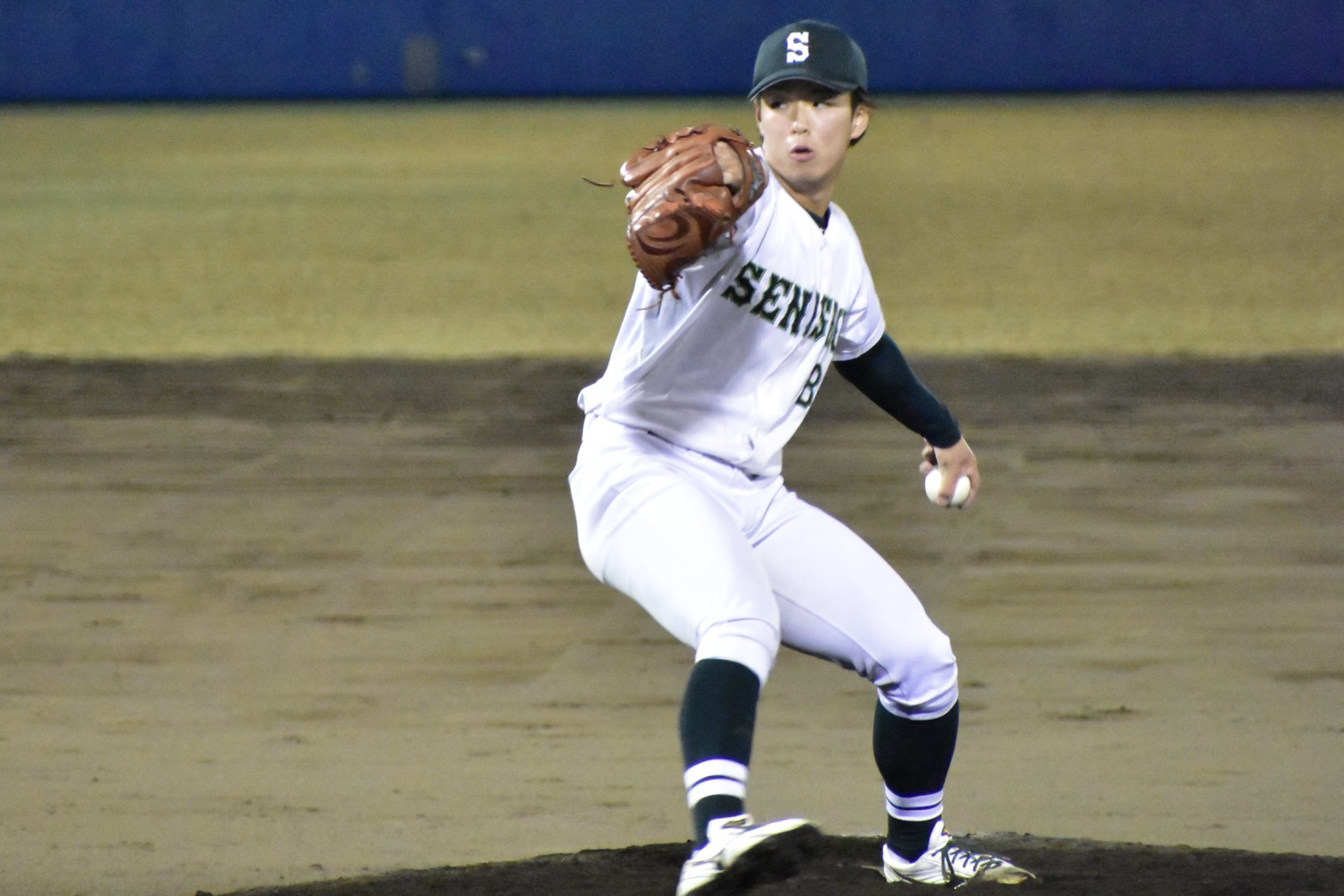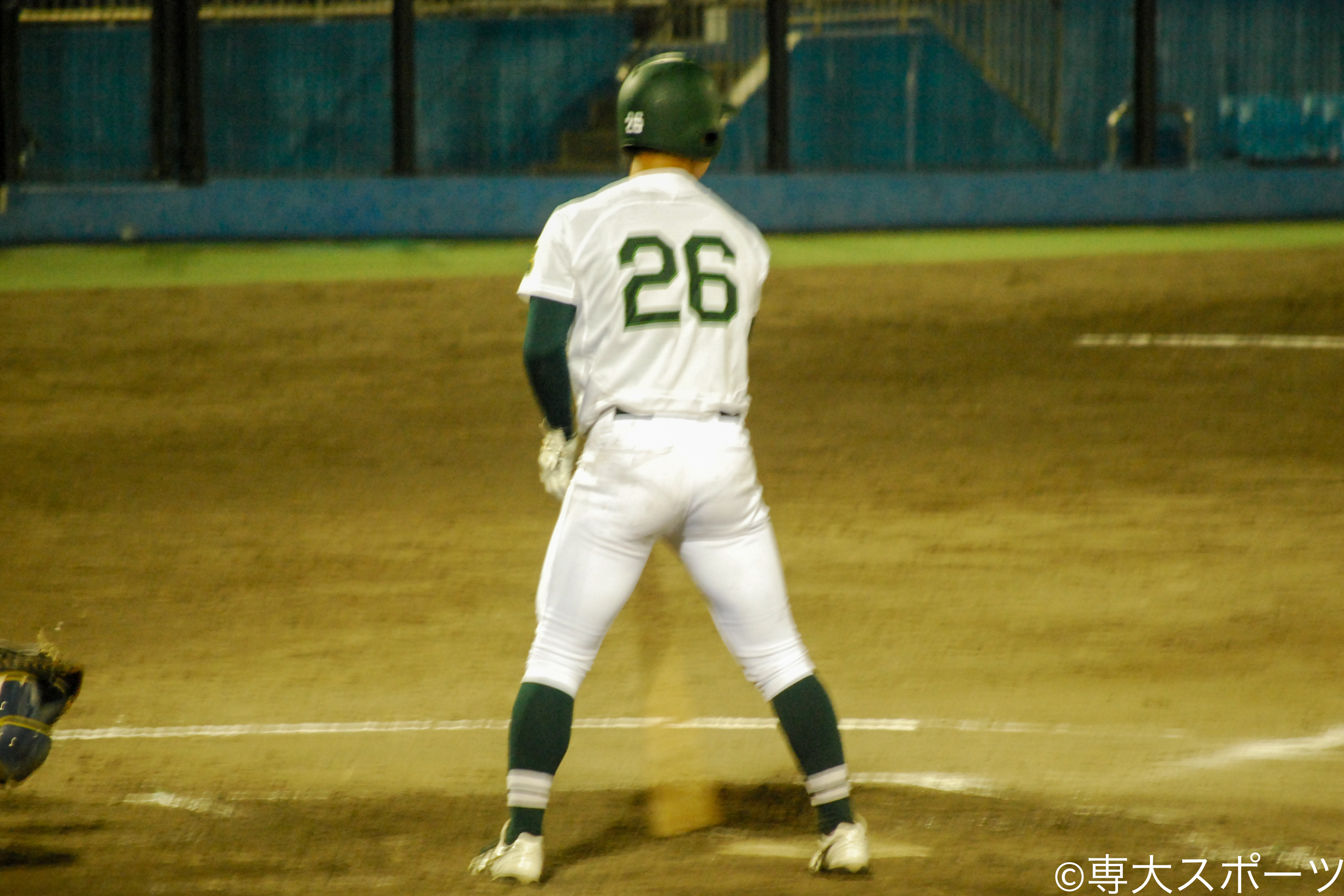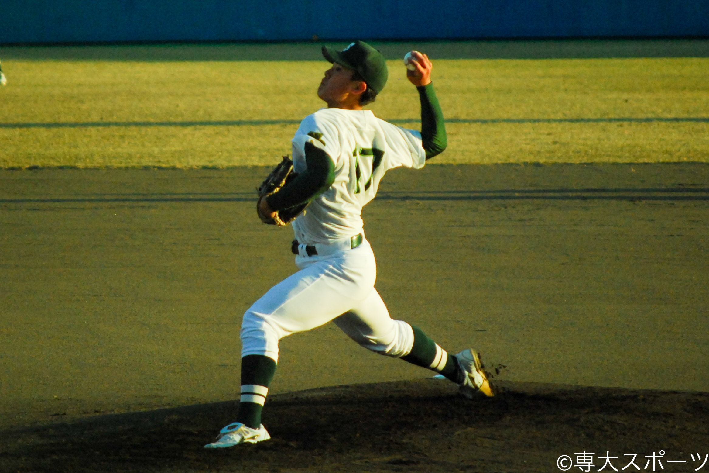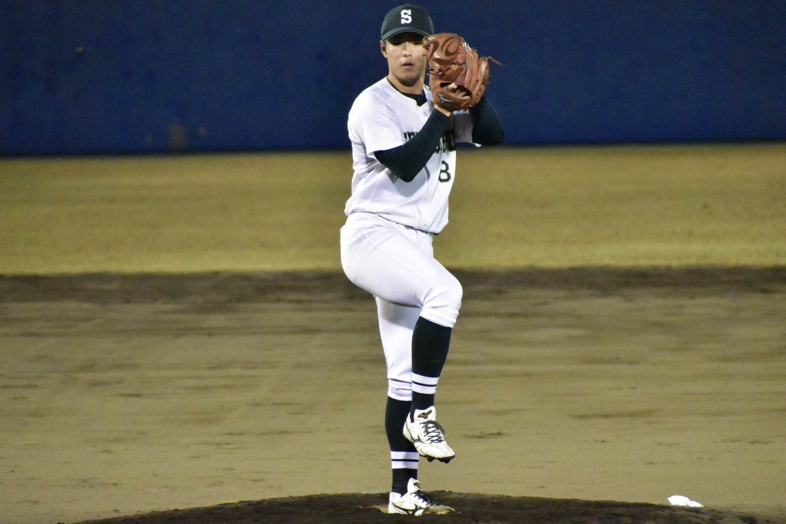 初回のマウンドには今年の秋季リーグ戦の終盤から先発に挑戦している梅澤翔大(経営1・専大松戸高)。出塁を許しながらも、最少失点に抑える投球で6回を投げ切った。後を継いだ廣崎漣(経営2・浜松開誠館高)は凱旋登板。父と高校時代の友人が見守る中での登板となった。