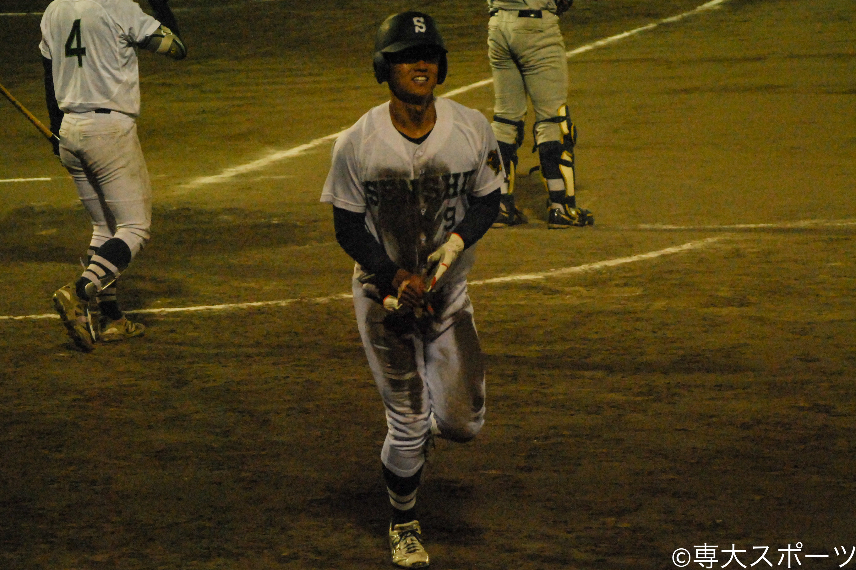 同じ日に行われた2戦目は明大との顔合わせとなり、逆転サヨナラ勝ち(大会規定により8回で試合終了)を収めた。