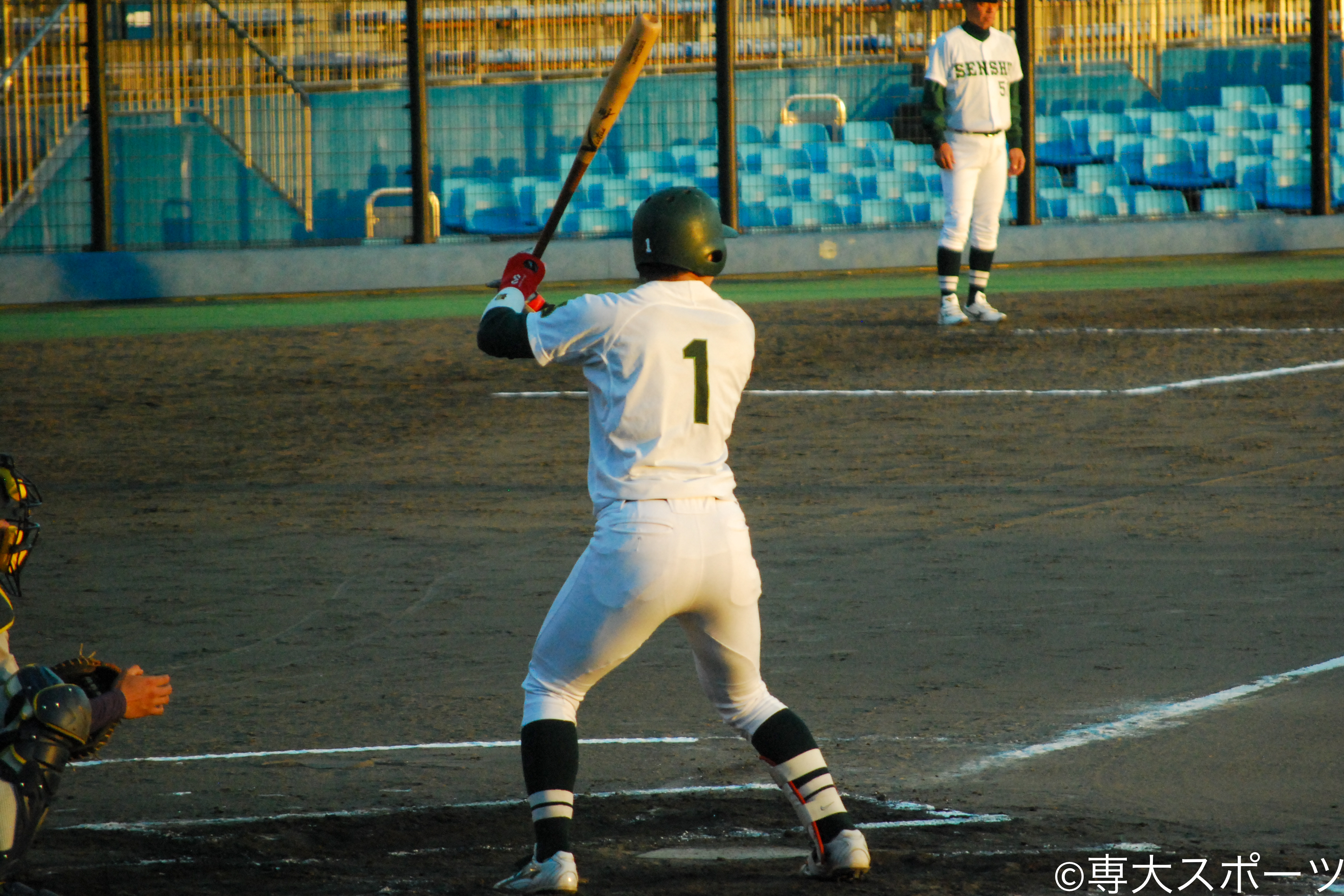 東京六大学を含む関東圏11大学、県内5大学、さらに県内6高校が出場した今大会。専大は初参加となり、静岡大学(静岡県学生野球リーグ)・明治大学(東京六大学野球連盟)と対戦した。