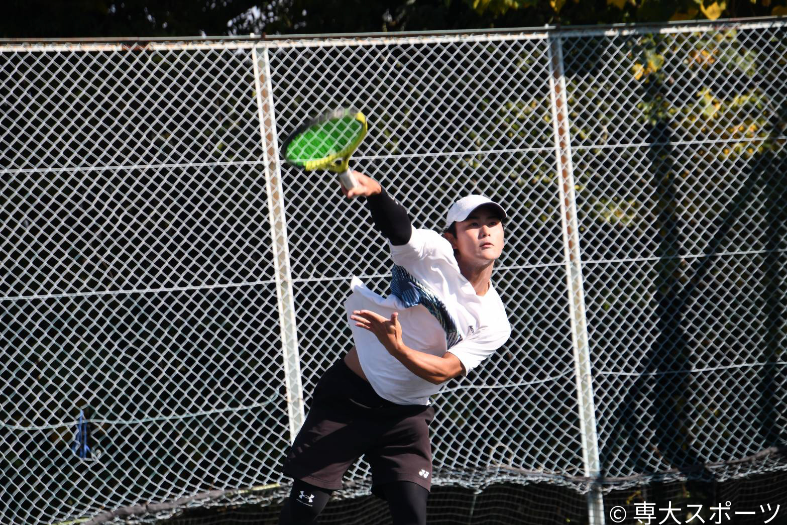 関東大学対抗テニス選手権大会の第3戦で東京国際大学と対戦し、2-3で敗れた。互いに2連勝で迎えた一戦だったが、アクシデントが重なりダブルスは棄権。シングルスの3人のみで挑むことになった。予選突破には3戦全勝が必須な中、小坂陽光(経済2・鳳凰高)と傳刀友月(経済2・静岡学園高)は勝利を収めるも、石黒康祐(法1・八千代松陰高)は敗れて無念の予選敗退となった。