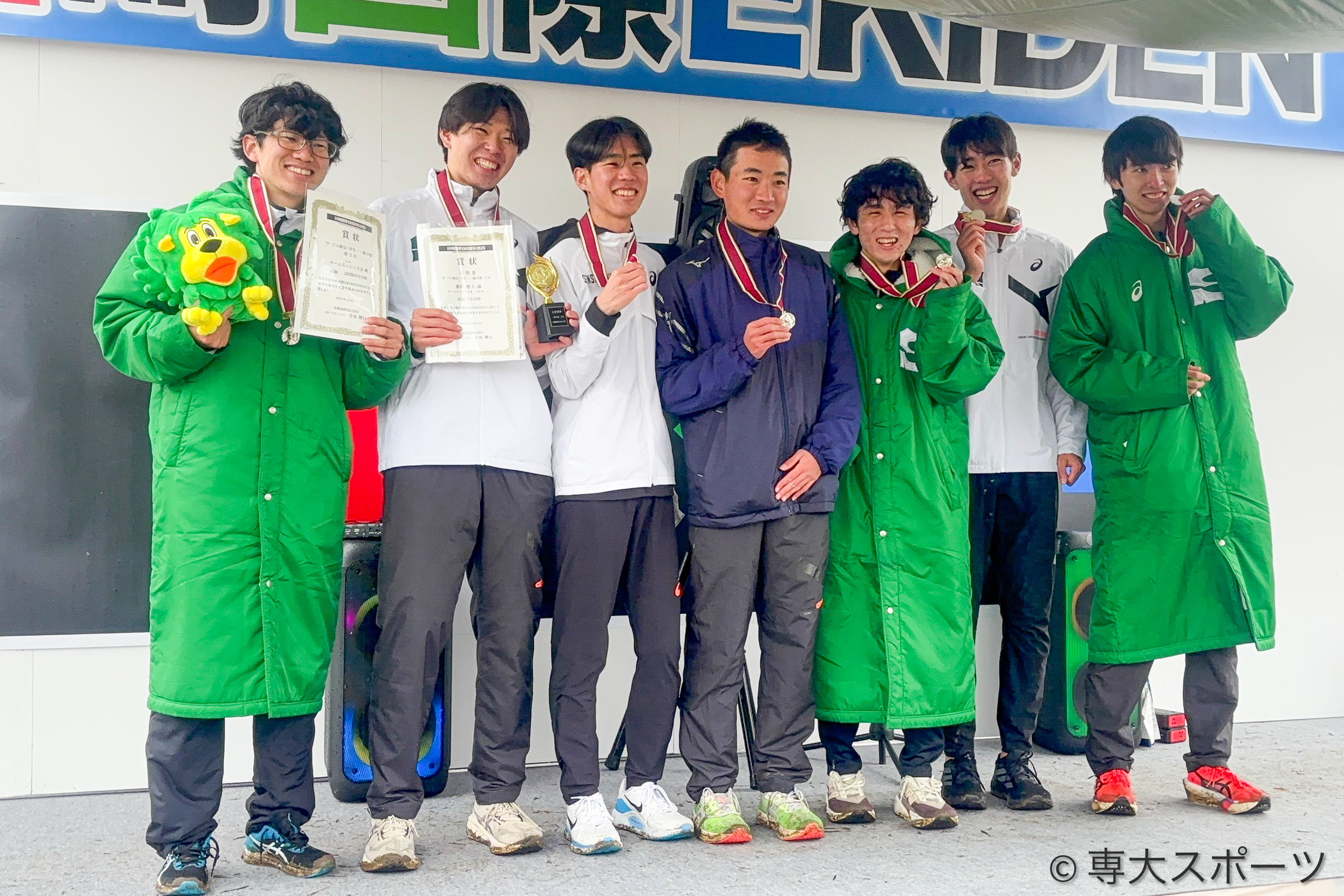 12月14日に川崎国際EKIDEN 2025が開催され、7Pフル駅伝学生・一般の部に専大の4年生による連合チームが出場。チーム“ろっじくるま”は総合2位の2時間9分32秒と優勝には届かなかったが、笑顔で大学4年間を締めくくった。