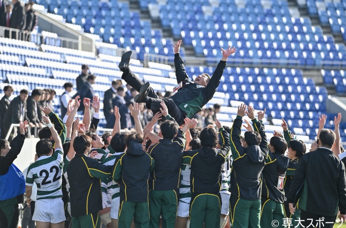 その後、33-19でノーサイドの笛が鳴ると、選手達は1部昇格の喜びに酔いしれた。過去3年間の入替戦では手が届かず、悔しい結果に終わった。だが、石倉体制3年目となる今年、ついに最高目標を達成した。来季から再び戦いの場を1部リーグに移すが、新参者として今季1部王者・東海大などの名だたる強豪に立ち向かう。