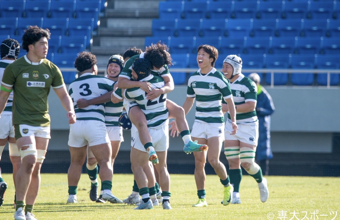 試合は33―19で専大が勝利し、会場は歓喜に包まれた。2021年以来4年ぶりに1部へ復帰し、強豪復活に向けた戦いが始まる。
