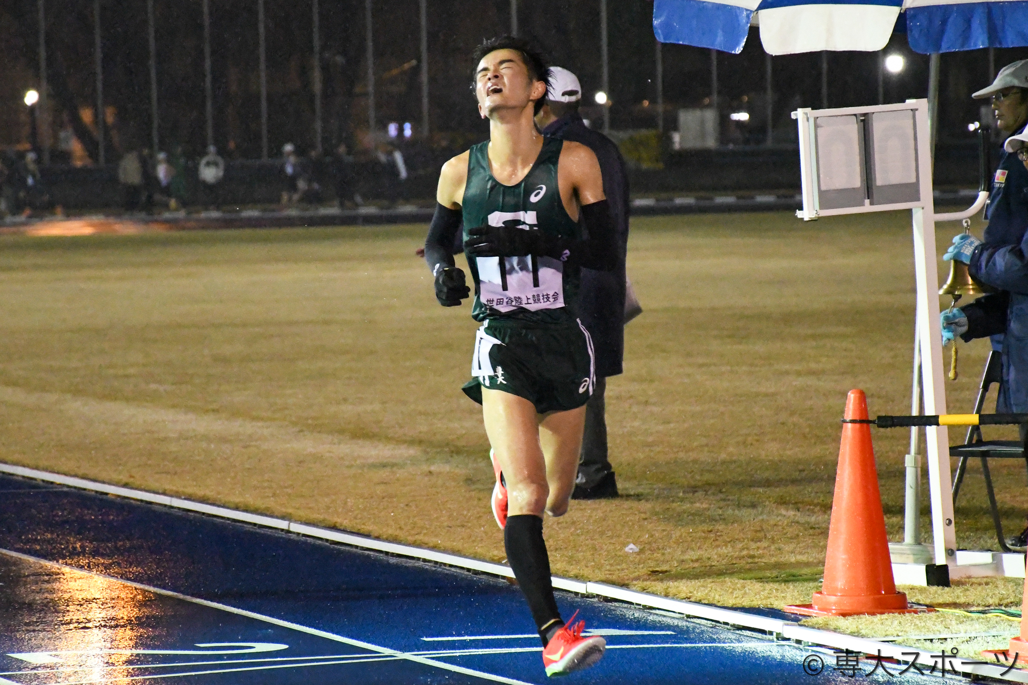 10000mの記録会に挑戦したのは昨年12月1日に行われた日体大記録会以来1年ぶり。「当時は30分40秒くらいだった。夏の練習に距離を踏むことで、ロードでもトラックでも10000mを走るのが楽になった」と自信をもって今大会に挑んだ。