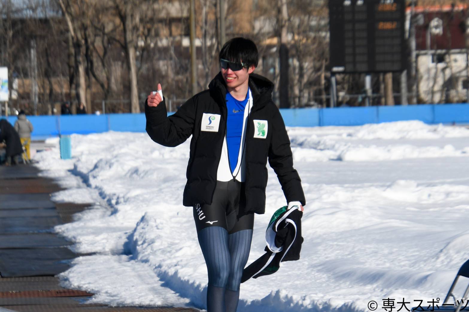 地元、釧路で宮坂が大きな結果を残した。「優勝することが目標だっただけに素直に嬉しい」と初日の1500mでは笠原のタイムに0.04秒及ばず2位に終わった背景もあり、2位の辻本と0.07秒差での優勝を喜んだ。僅差での優勝に対し、「コンマ差での優勝を勝ち取れたことは自分の実力が上がってきた証拠だと思う」と確かな自信を手に入れた。男子1000mは前回大会で軍司一冴(経営3・白樺学園高)が優勝したため、専大としては2年連続でのタイトルを手に入れたことになる。宮坂は「(専大として)種目連覇できたのも強いメンバーがそばにいるので、一緒に底上げできている」と良い環境でプレーできている充実感を口にした。