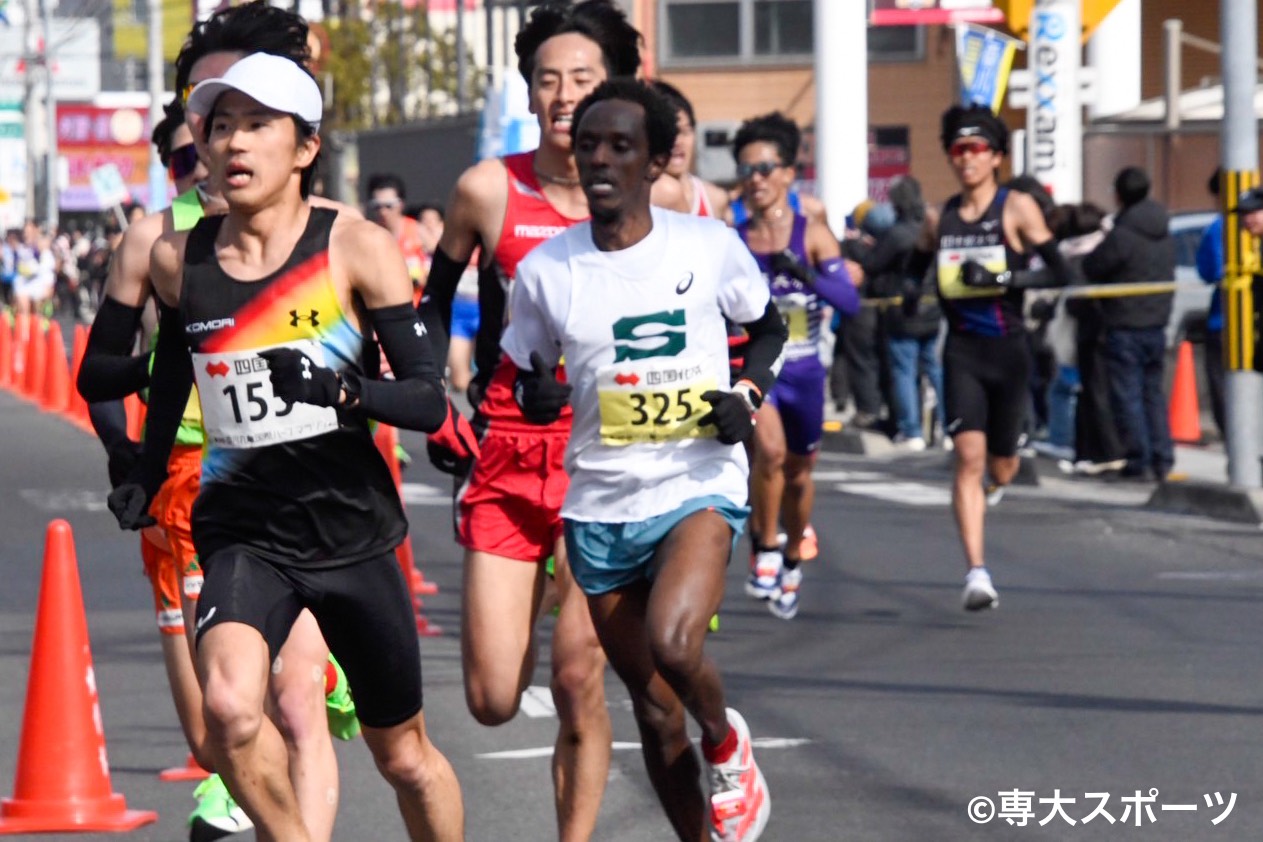 箱根駅伝予選会以来のハーフに挑んだマイナは序盤から快走。5kmを14分00秒、10kmを28分05秒とハイペースで通過した。不安のあった足の状態も「大丈夫だった」と自信をもって挑んだ。