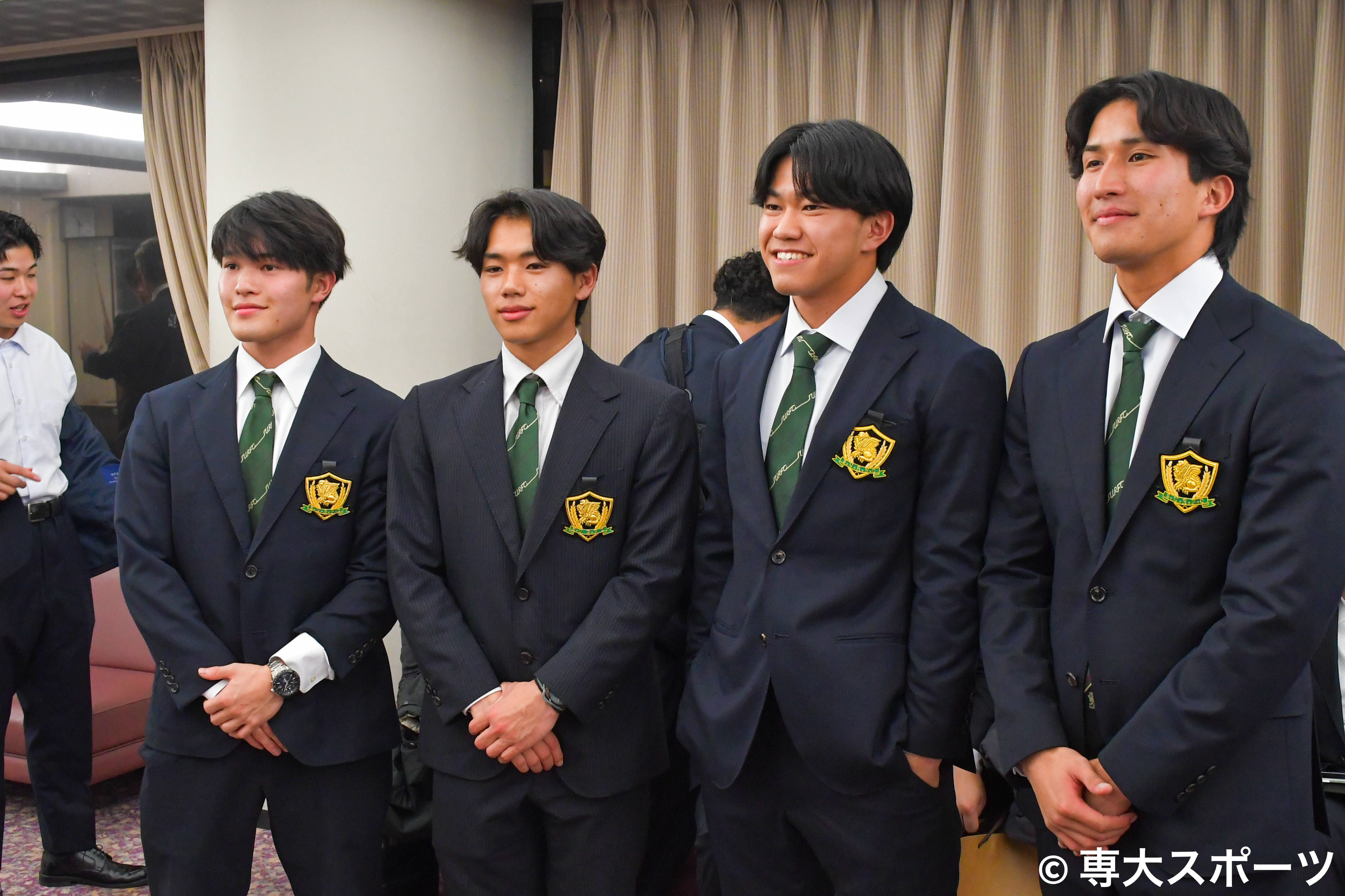 左から、奥野裕次郎、斉藤真、野村映登(経済2・高川学園高)、山下丈二(経営1・仙台育英高)