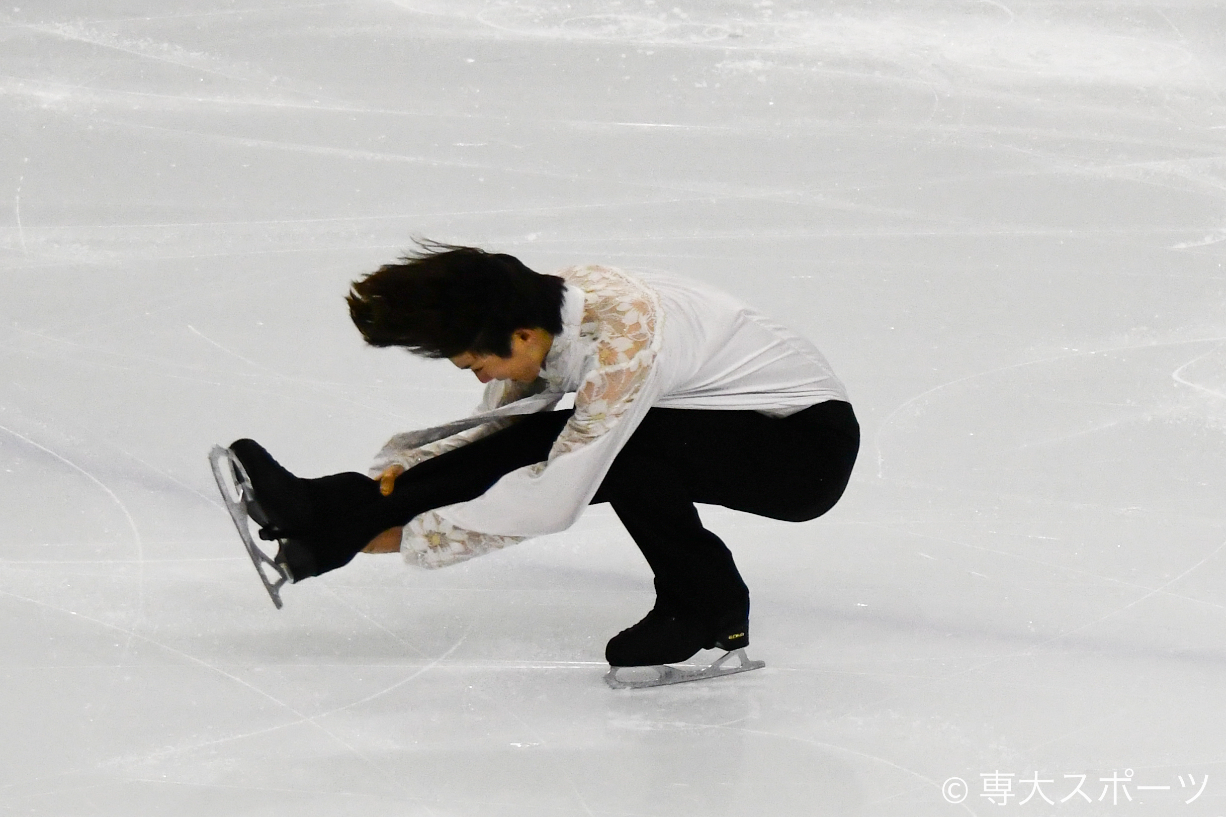 前半のダブルフリップとトリプルサルコウで2度転倒、その後も後半の3連続コンビネーションジャンプでの回転不足などミスが響き、スコアは76.50と伸び悩んだ。それでも最後まで大きく身体を使い、楽曲の世界観を表現する演技を見せた。
