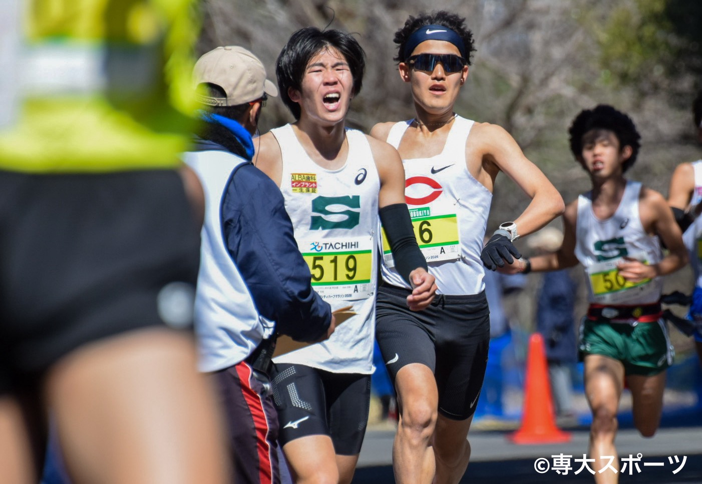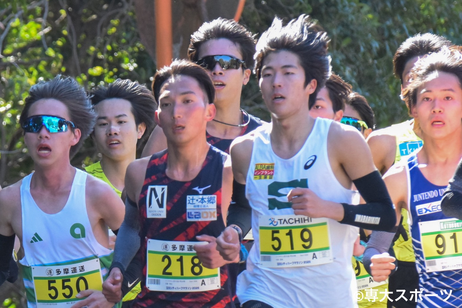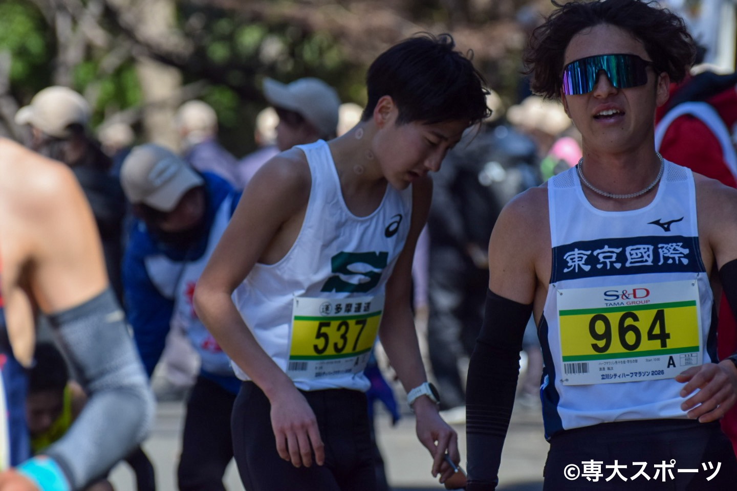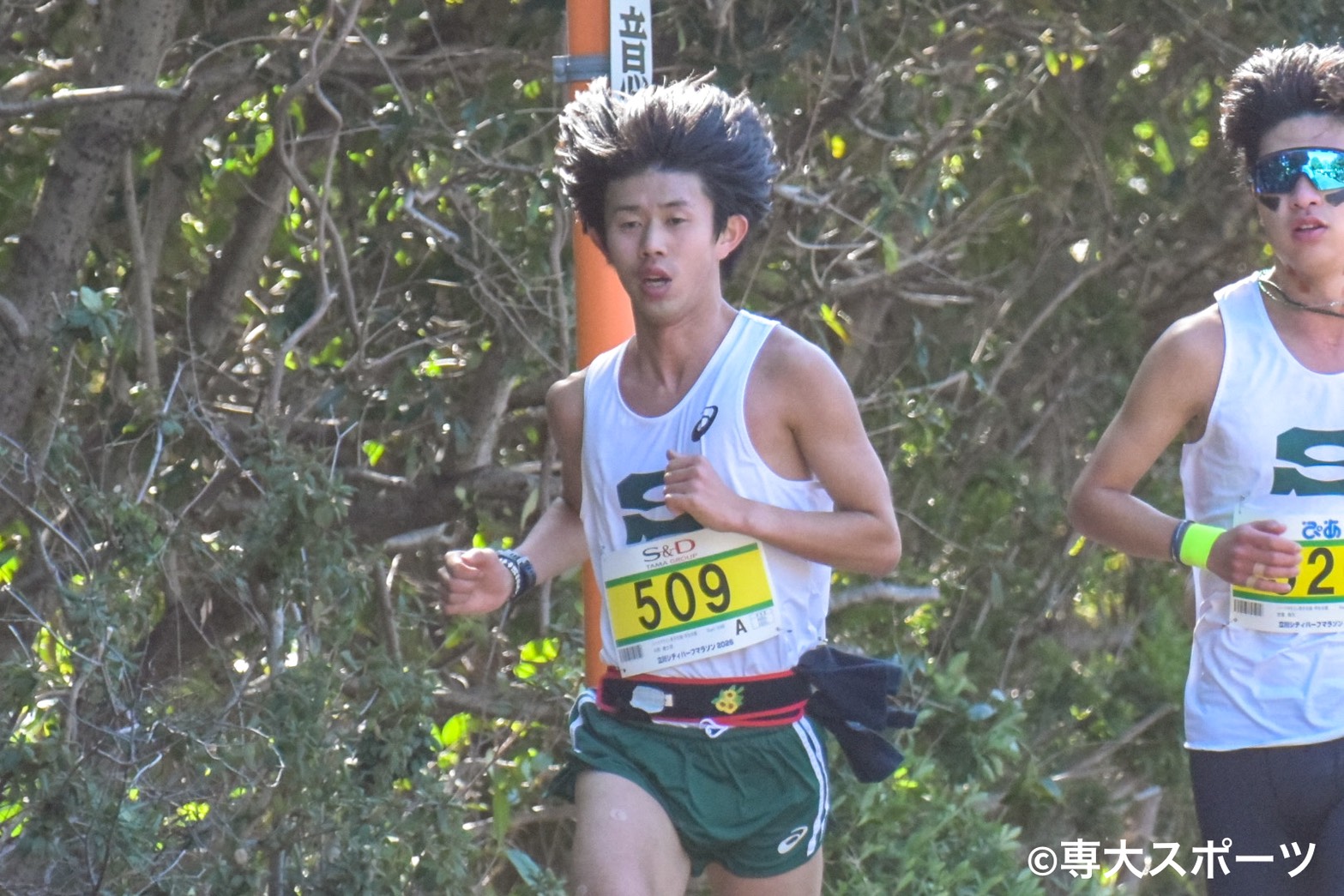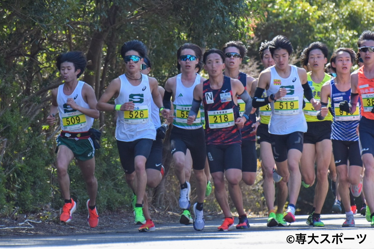 強風が吹き荒れる中行われた立川シティハーフマラソンに専大からは21名が出場し、9名が自己記録を更新した。チームトップは水津智哉(経済2・今治北高)。1時間3分39秒で自己記録を24秒縮め、全体5着で入賞した。チーム2番手の中西慶士郎(経営2・比叡山高)は1時間3分45秒、3番手の安斎陸久(経営1・いわき秀英高)は1時間3分59秒と自己記録更新とはならなかったが、63分台を確かなものにした。
