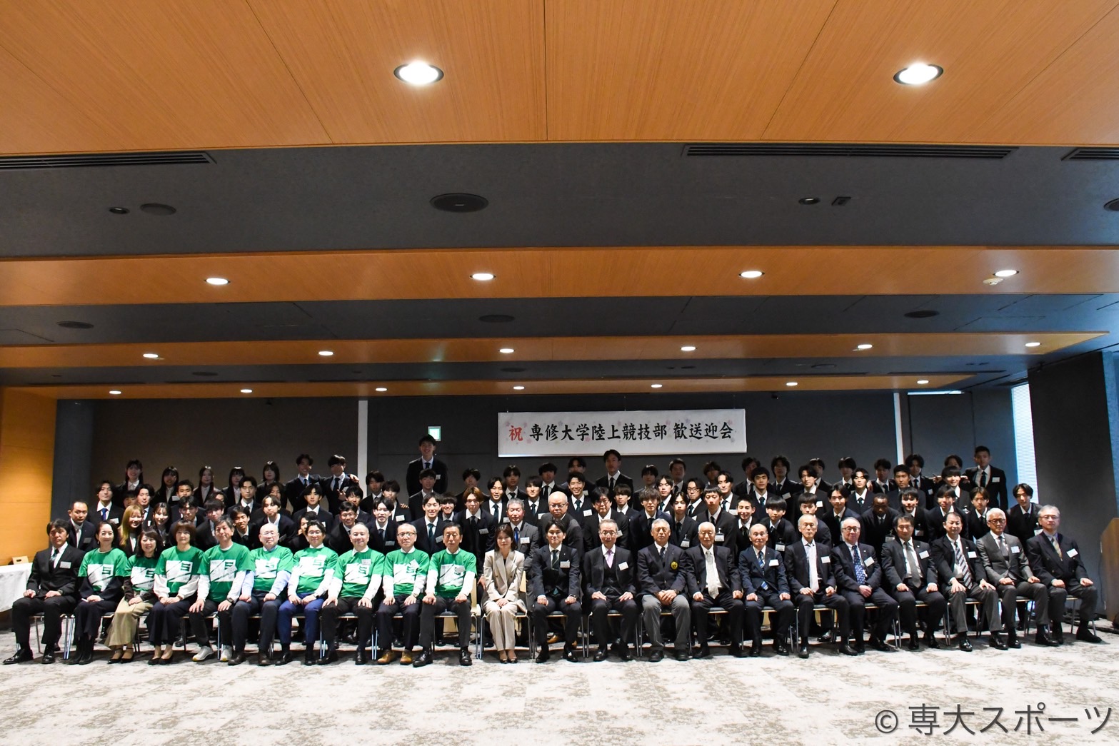 ▲専大陸上競技部の強化を願い、熱い言葉を投げかけた